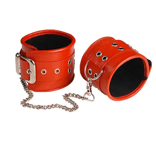Оковы кожаные красные с широким ремешком, соединенные цепочкой длиной 35см 3072-2