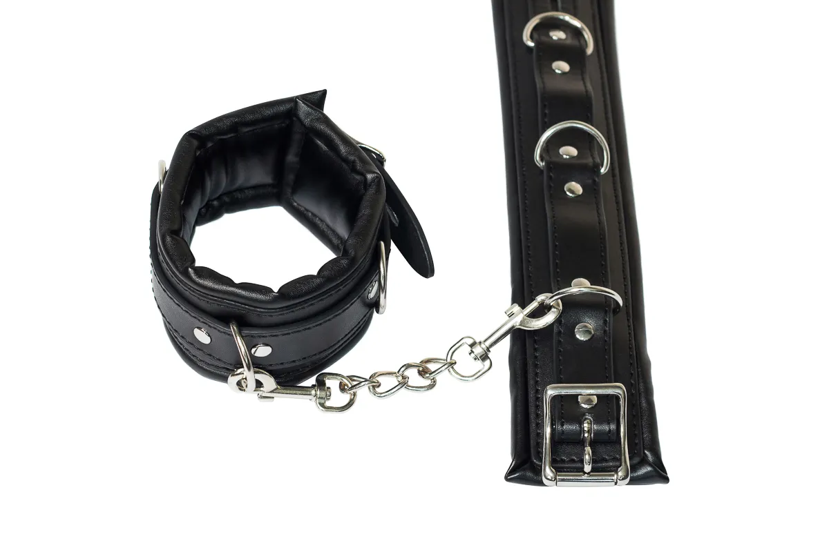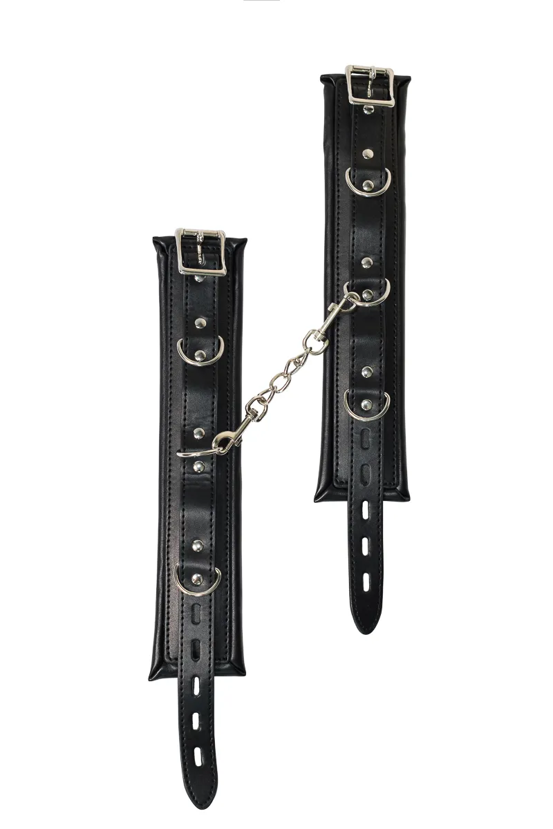 Обезоружить партнера и показать ему, кто сегодня руководит сценарием, можно с помощью одного простого приспособления - поножей. Натуральная ПВХ-материал нежно захватывает ногу в приятный плен, подчеркивая изысканность и пикантность ситуации, и дарит совершенно новые ощущения, связанные с невозможностью полноценно двигаться. Если же жертвой сегодня будете не Вы, то сможете вдоволь насладиться и поиграть с каждой частью тела своего пленника. Поножи очень прочные, поэтому Вы можете прикрепить их к любому элементу мебели, возле которого будет разгораться ваша страстная игра. Общая длина: 40 см, Ширина: 6 см.