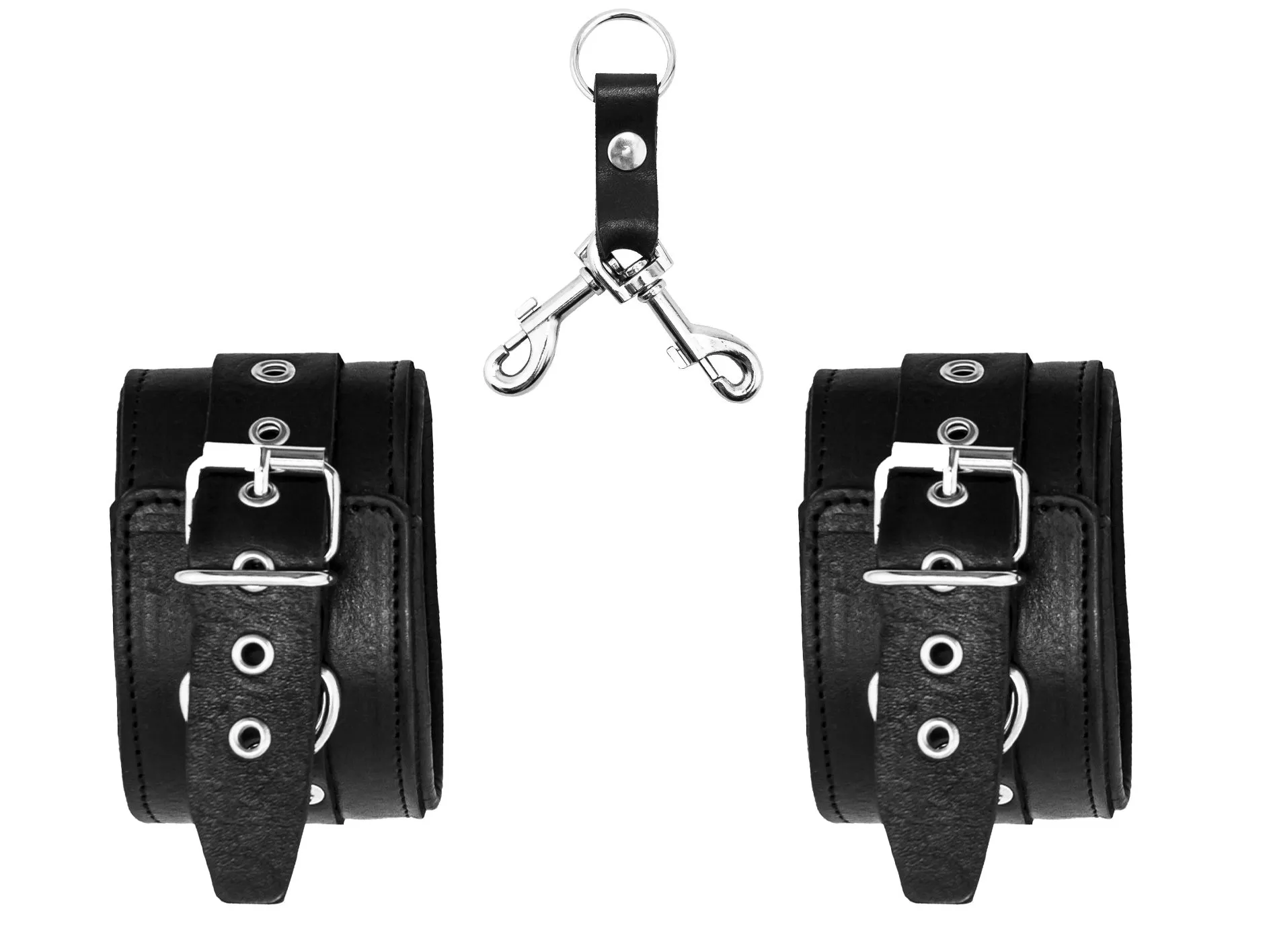 Они не нарушают кровообращение, просты в применении и обеспечивают надежную фиксацию. Данная модель изготовлена из натуральной кожи черного цвета с геометрическим рисунком из двух видов заклепок. Наручники оснащены удобным фиксирующим ремешком, позволяющим регулировать размер наручника. Мягкая подкладка (пена) обеспечит комфорт и безопасность.