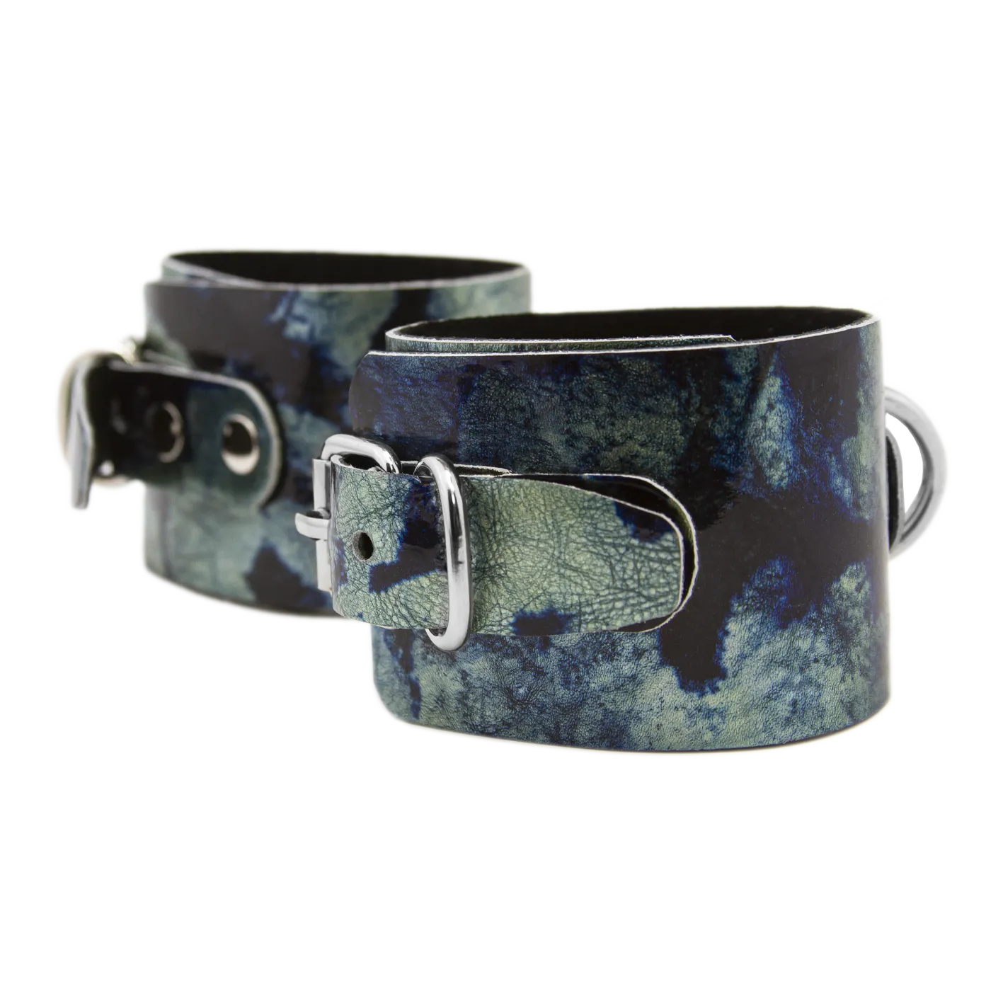—Наручники декоративные кожаные, изумрудно-черные