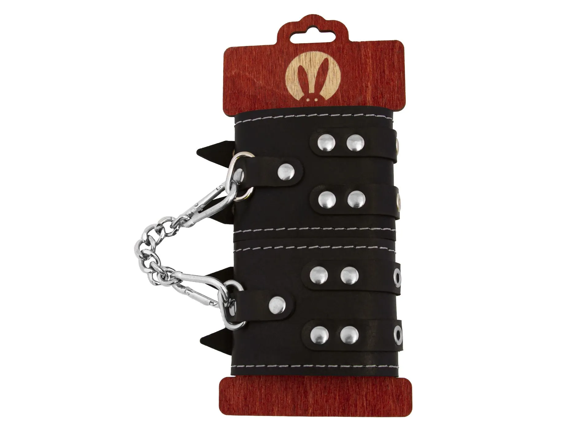 Наручники декоративные PinkRabbit с двумя ремнями и красной подкладкой, черные