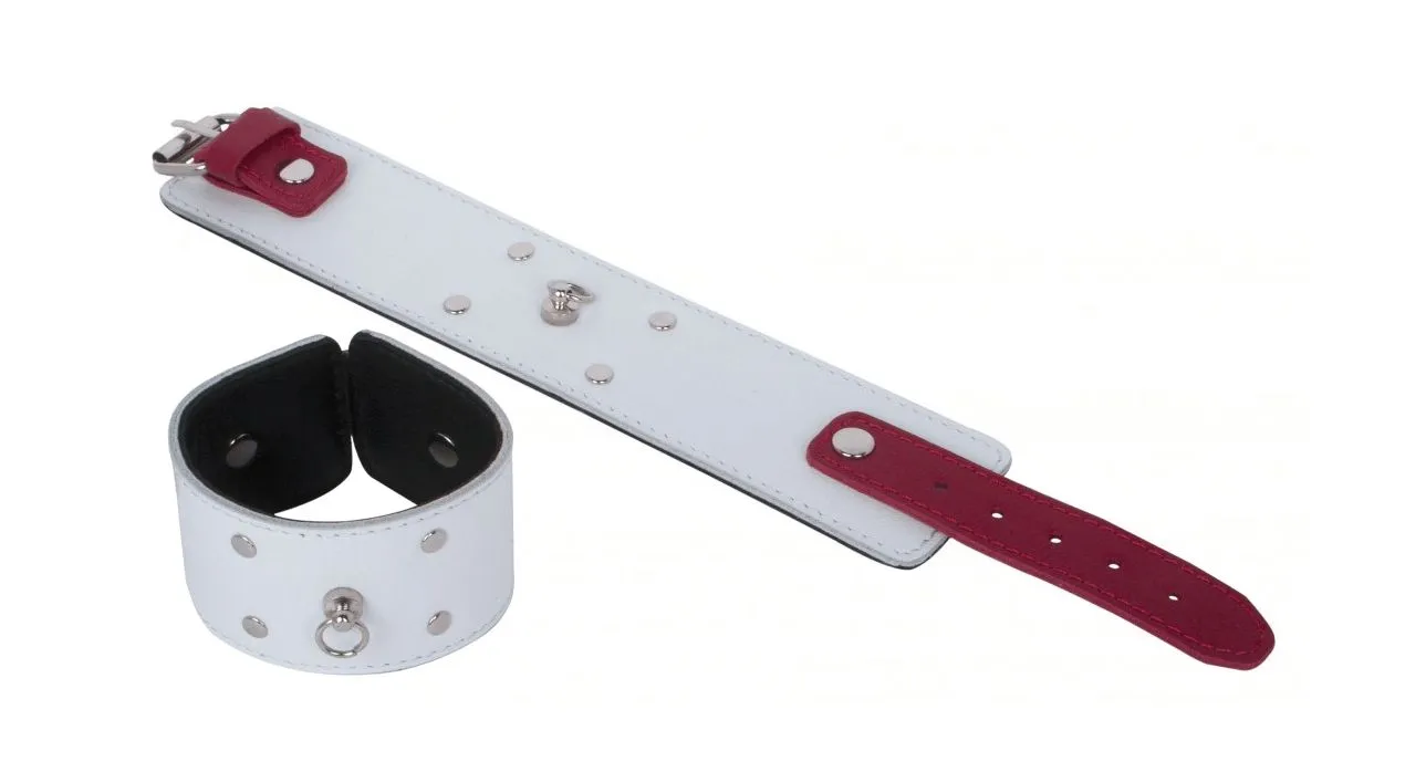 Наручники от компании Fire Horse помогут Вам сковать свою партнершу, чтобы полностью покорить ее своей воле. Они выполнены из натуральной кожи белого и красного цветов и отличаются завидной прочностью, способной выдержать долгий воспитательный процесс. При этом они чрезвычайно удобны, не натирают и не давят на кожу.