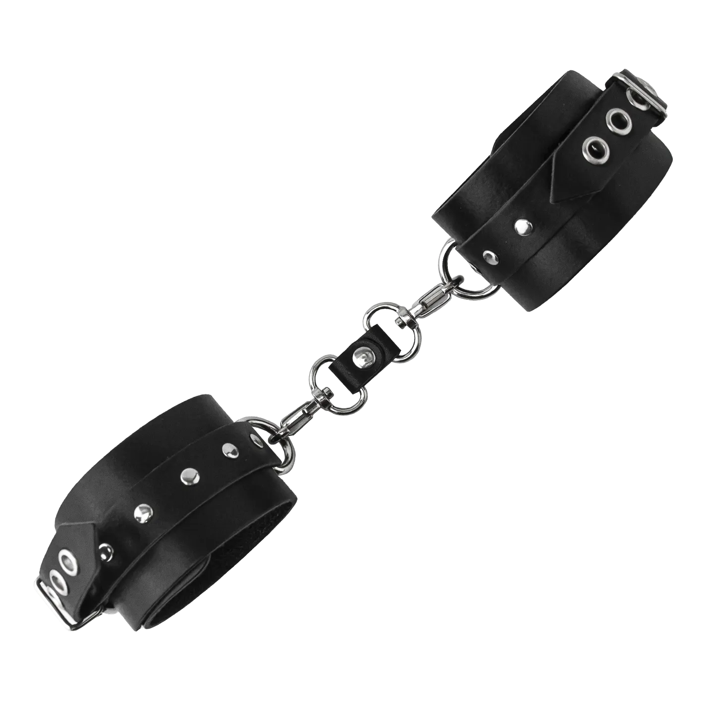 Теперь Вы можете быть уверены, что Ваш пленник не сбежит от Вас, если Вы обездвижите его с помощью этого БДСМ-аксессуара. Черные поножи декорированы металлическими клепками и соединены между собой при помощи цепочки. Ремешки с пряжками позволяют отрегулировать диаметр оков. Привнесите в Ваши интимные отношения немного разнообразия с помощью этого приспособления для сексуальных утех.