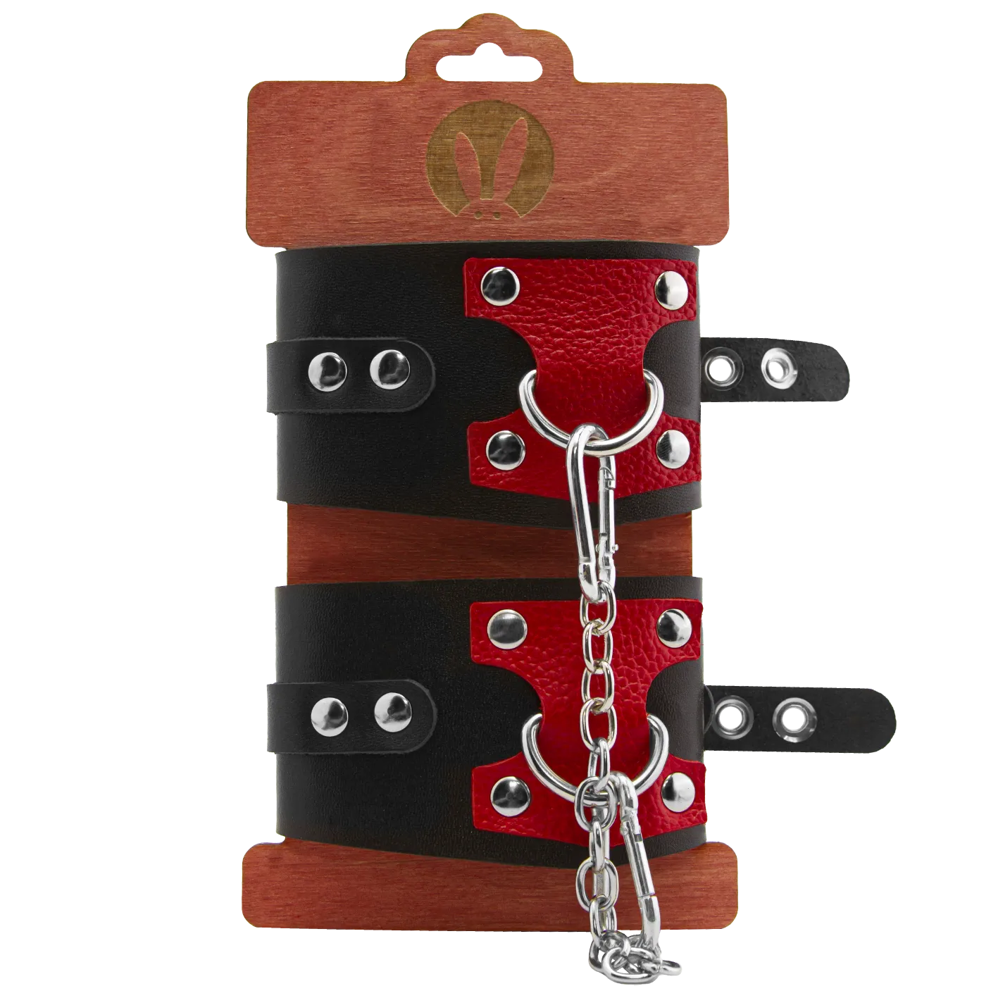 —Оковы PinkRabbit из черной кожи с красным декором