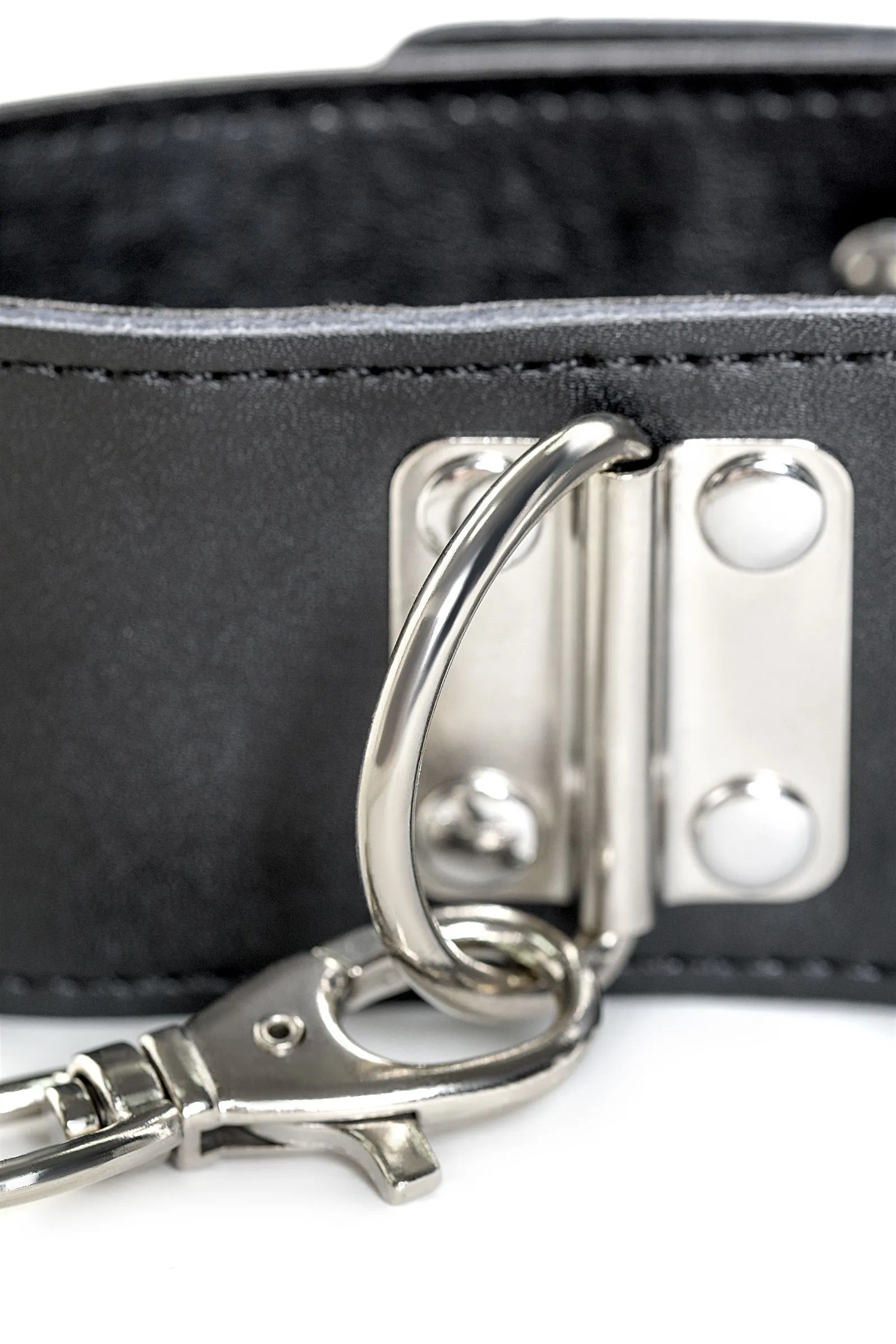 Кожа и металл — в этом ошейнике нет ничего лишнего. А вот дополнительный интересный элемент имеется — кожаный поводок 50 см, застёгивающийся на замок. Такой ошейник точно внесёт пикантные нотки в интимную жизнь.