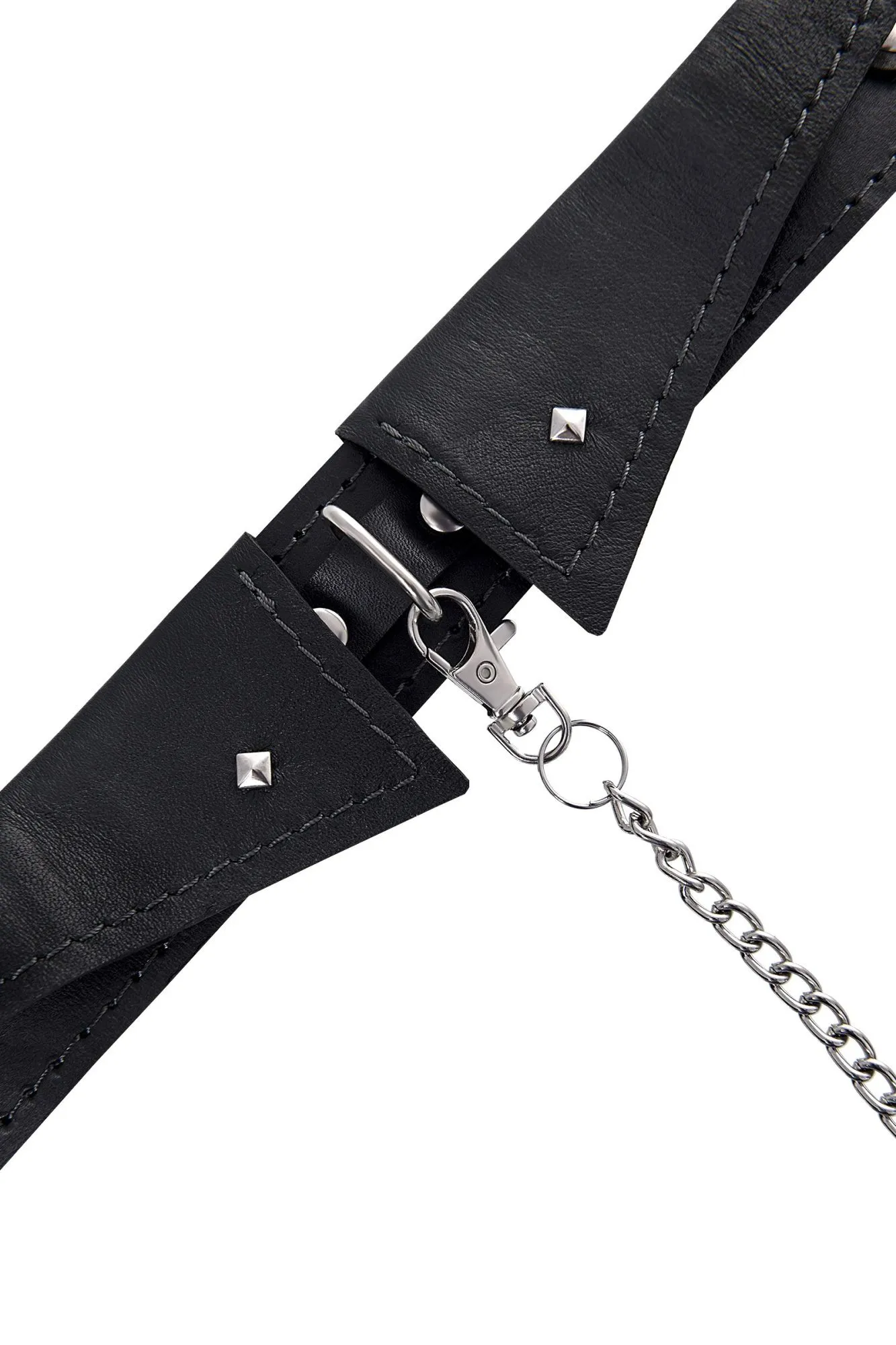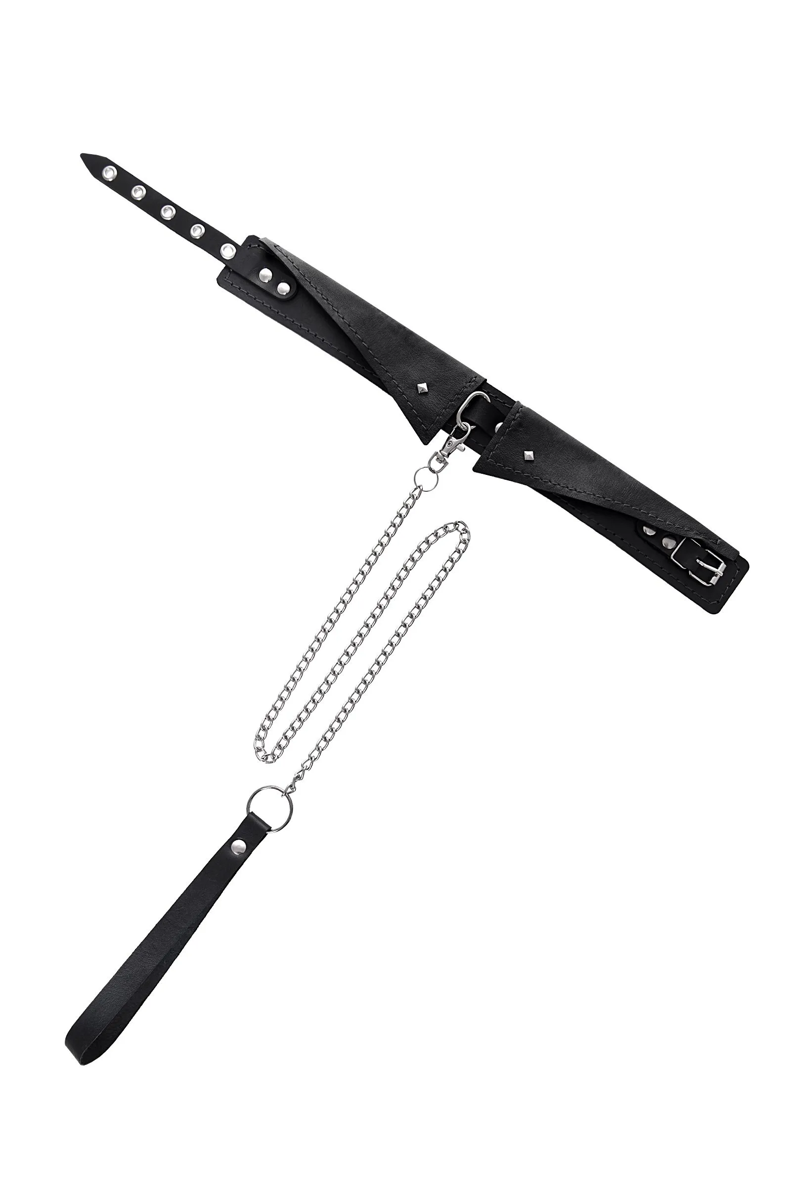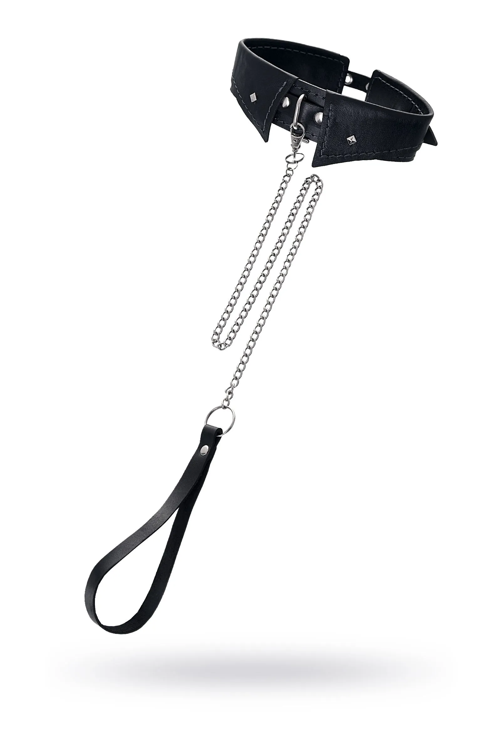 Ошейник-воротник Pecado BDSM,с поводком, натуральная кожа, чёрный