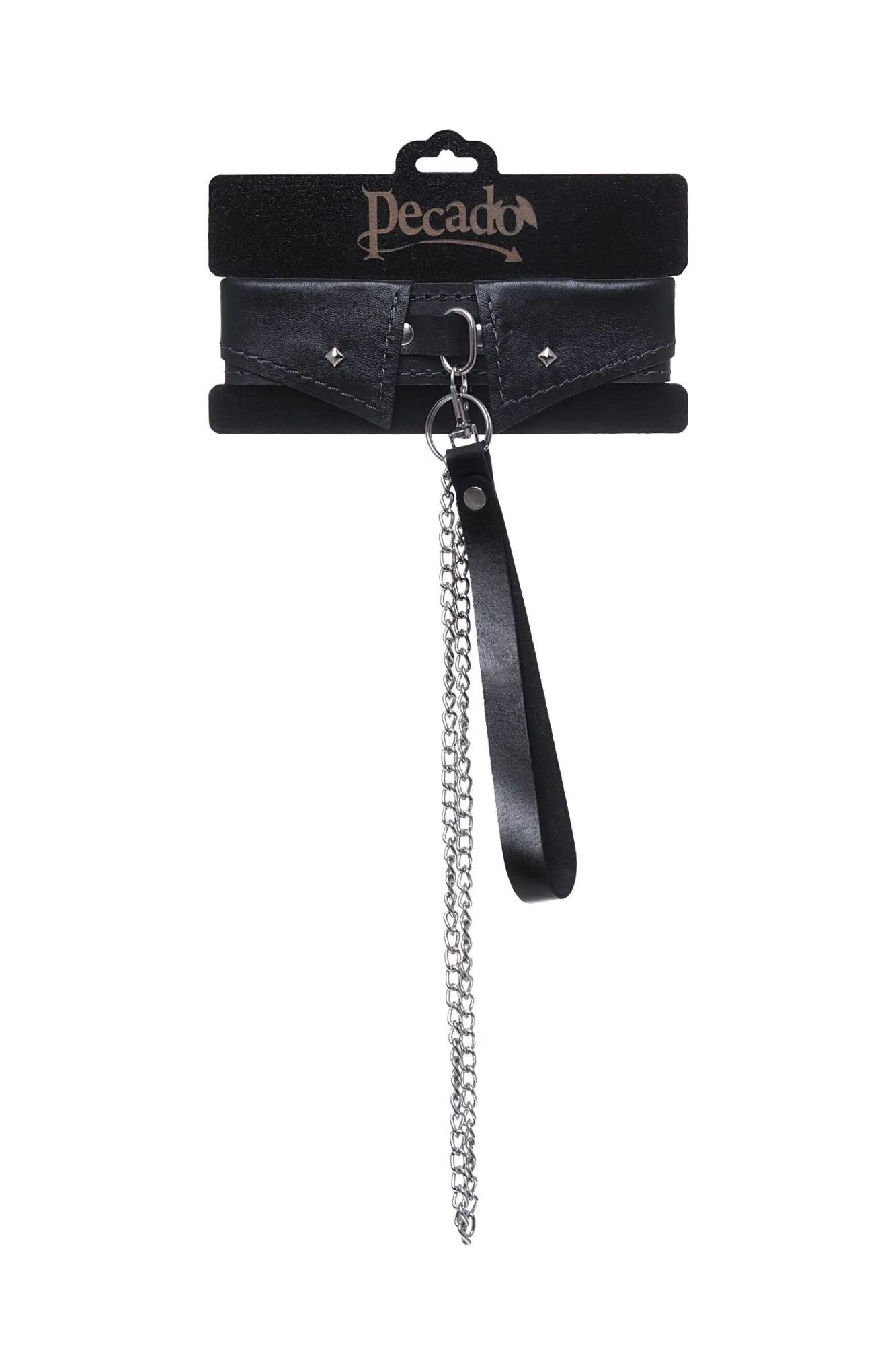 —Ошейник-воротник Pecado BDSM,с поводком, натуральная кожа, чёрный