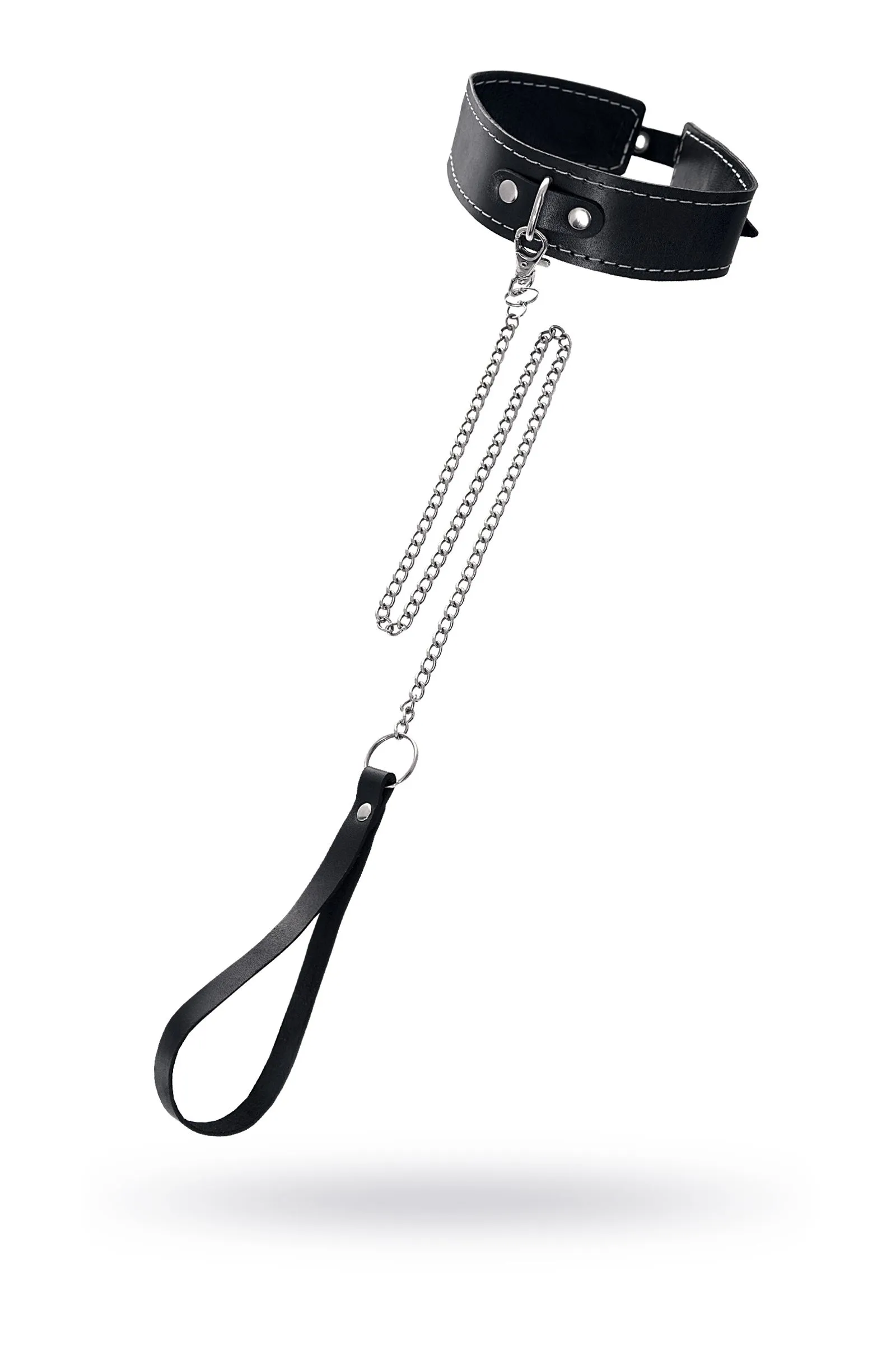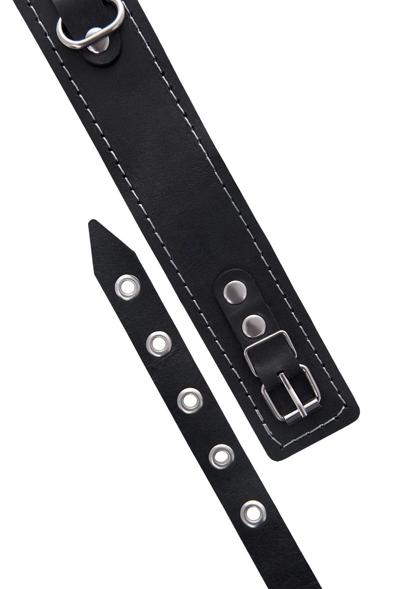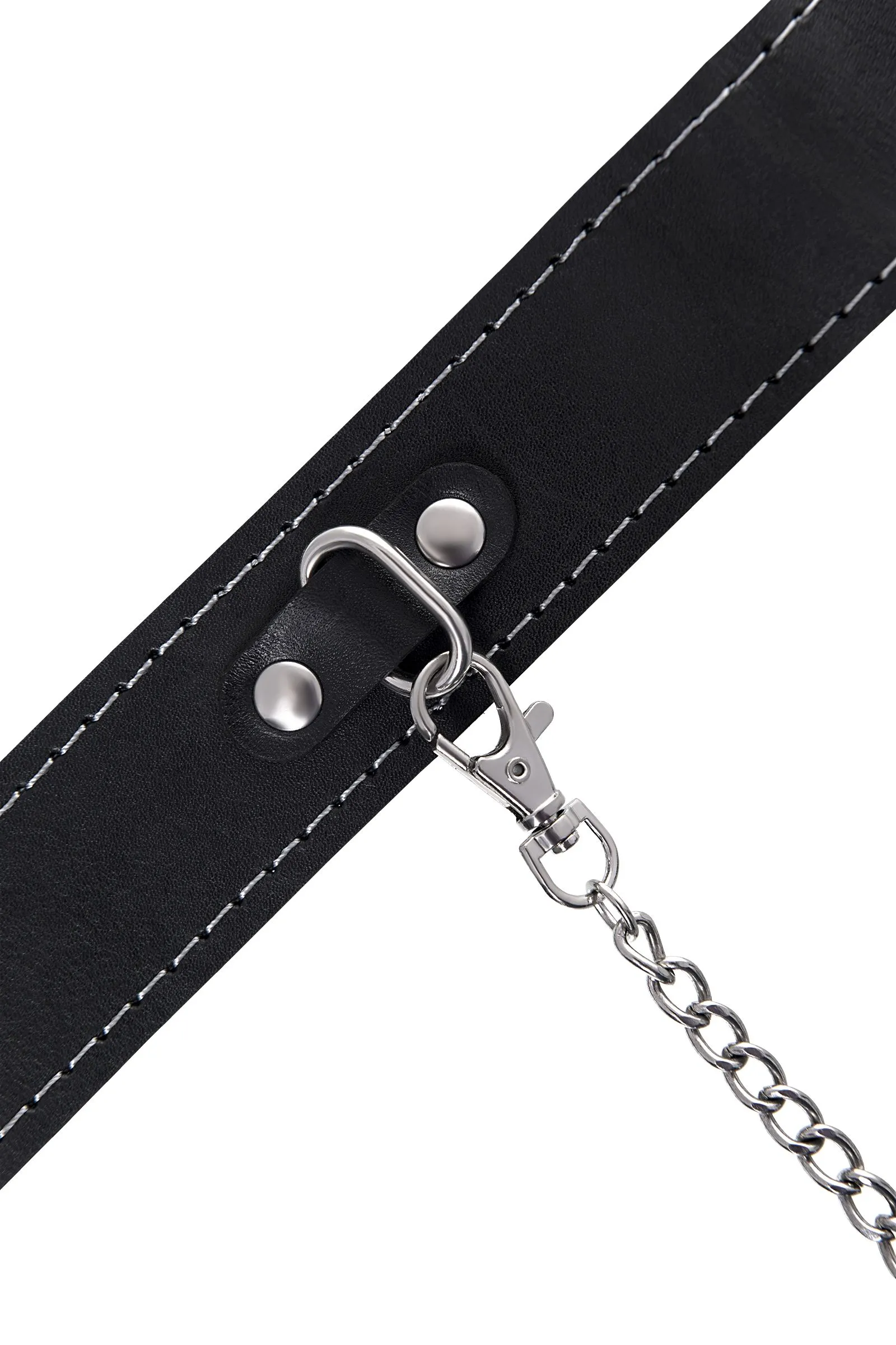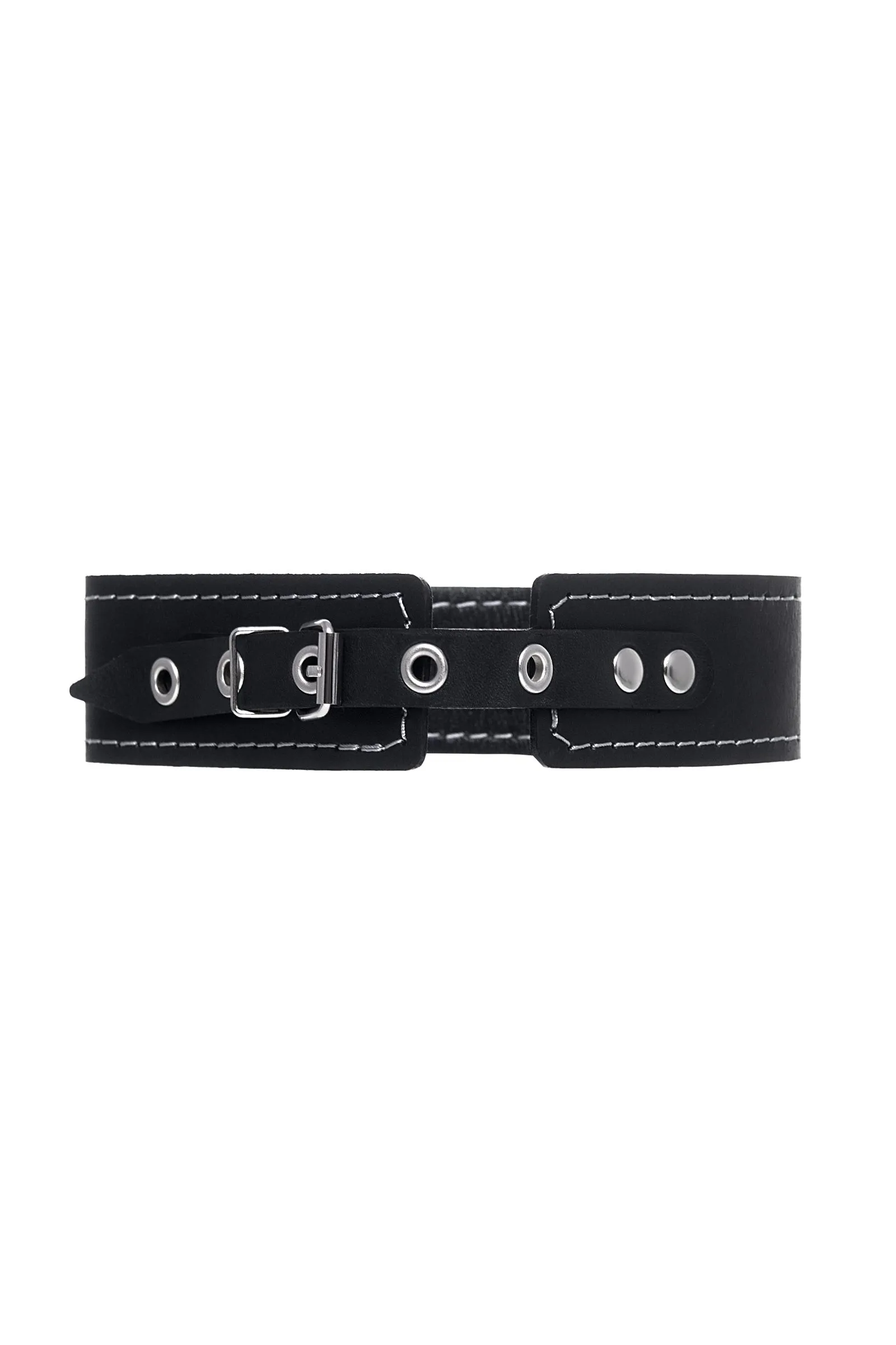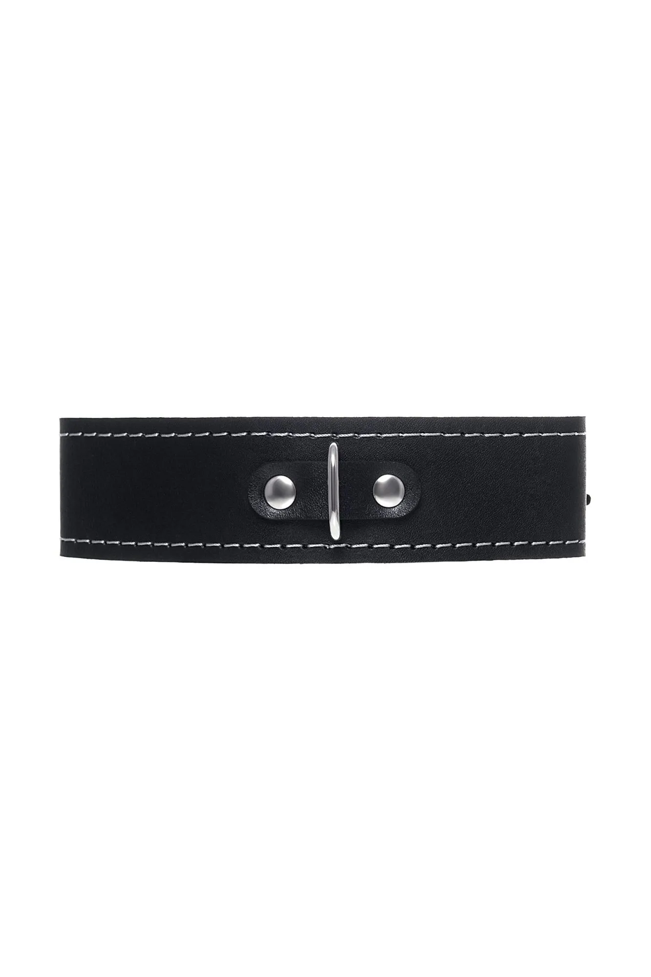Ошейник Pecado BDSM, двухслойный с белой строчкой, натуральная кожа, черный