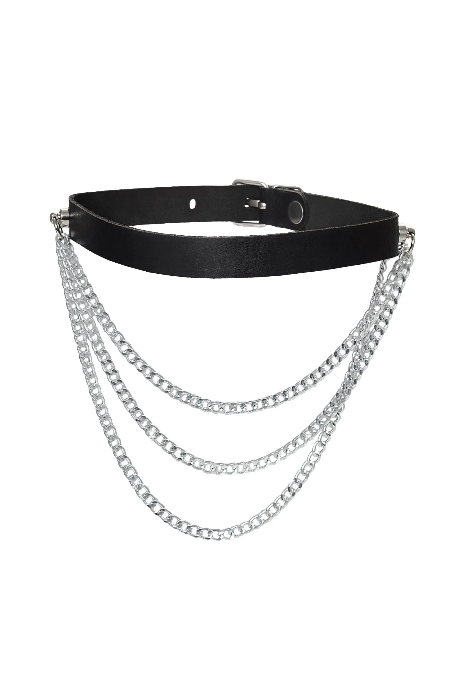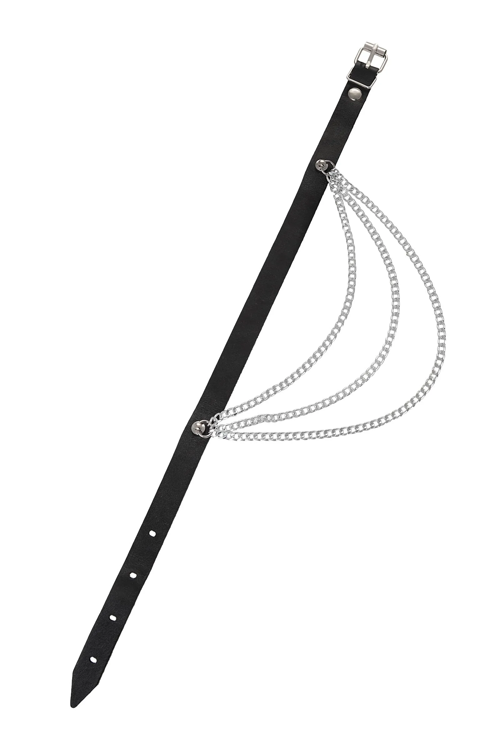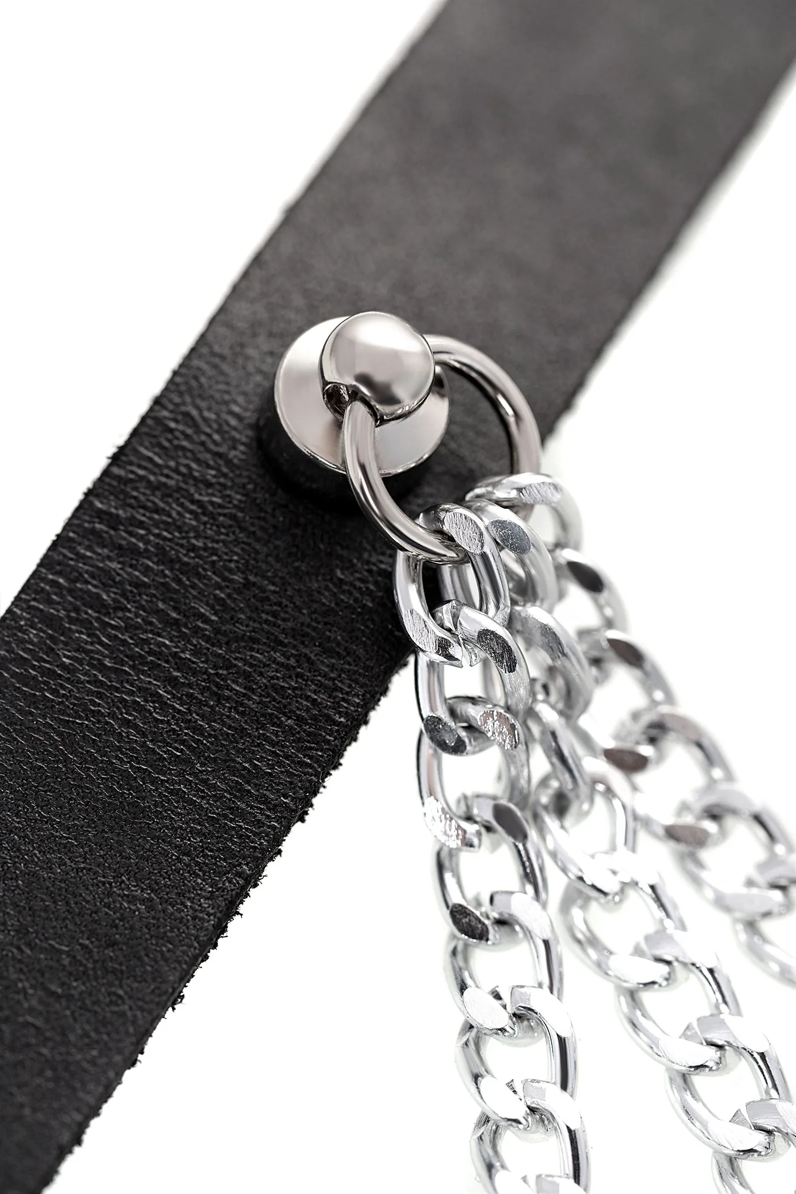 Чокер Pecado BDSM, с цепочками, модель 1, натуральная кожа, черный