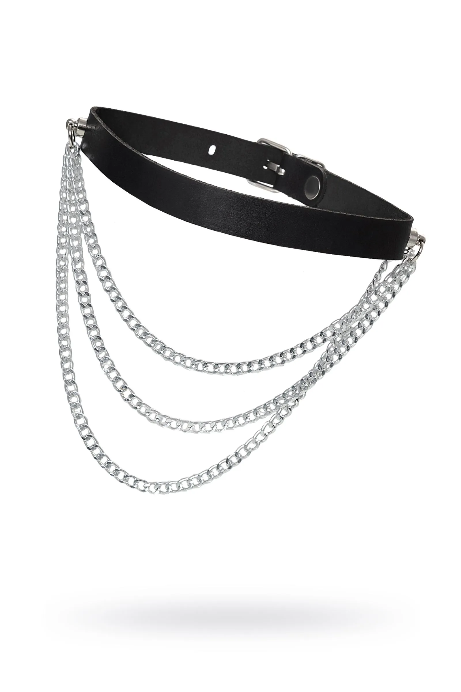 —Чокер Pecado BDSM, с цепочками, модель 1, натуральная кожа, черный