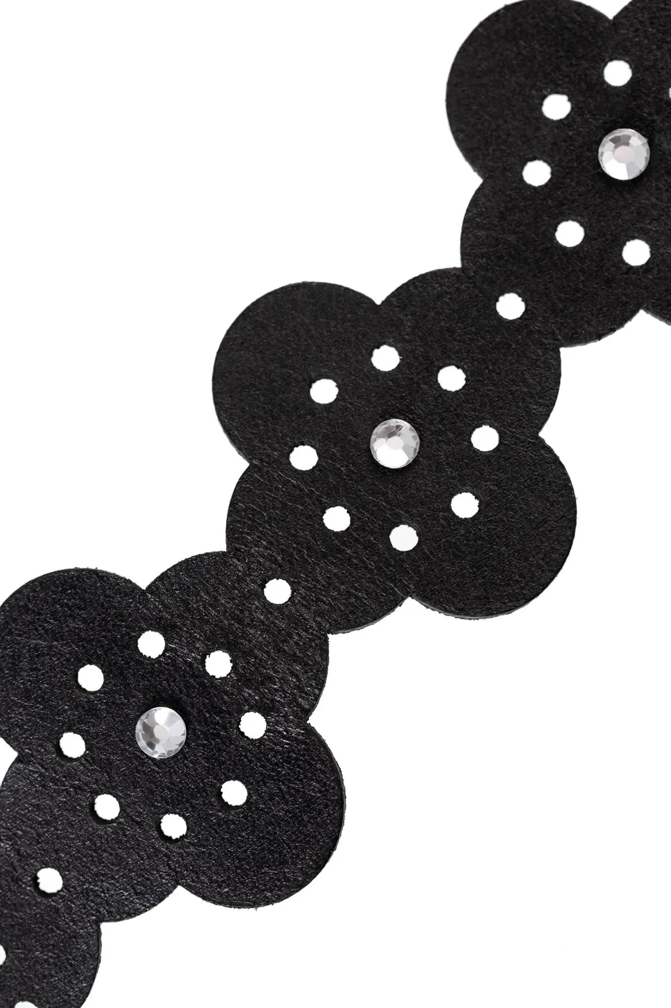 Легкий, игривый, притягательный чокер с узорами и стразами от Pecado никого не оставит равнодушным! Аксессуар изготовлен из безопасной, экологичной, натуральной кожи. Черный, износостойкий материал плотно прилегает к шее, не слетает и не оставляет следов на теле. Аромат натуральной кожи добавляет нотки дерзкого возбуждения в процессе использования. Благодаря надежной металлической пряжке чокер крепко фиксируется на необходимый обхват шеи. Аксессуар декорирован миниатюрными, сверкающими стразами. Для тех, кто желает погрузиться в мир новый чувств. ▪️ 100% натуральная кожа. ▪️ Ручная работа. ▪️ Износостойкий, тактильно приятный материал ▪️ Надежная высококачественная фурнитура. ▪️ Универсальный размер.