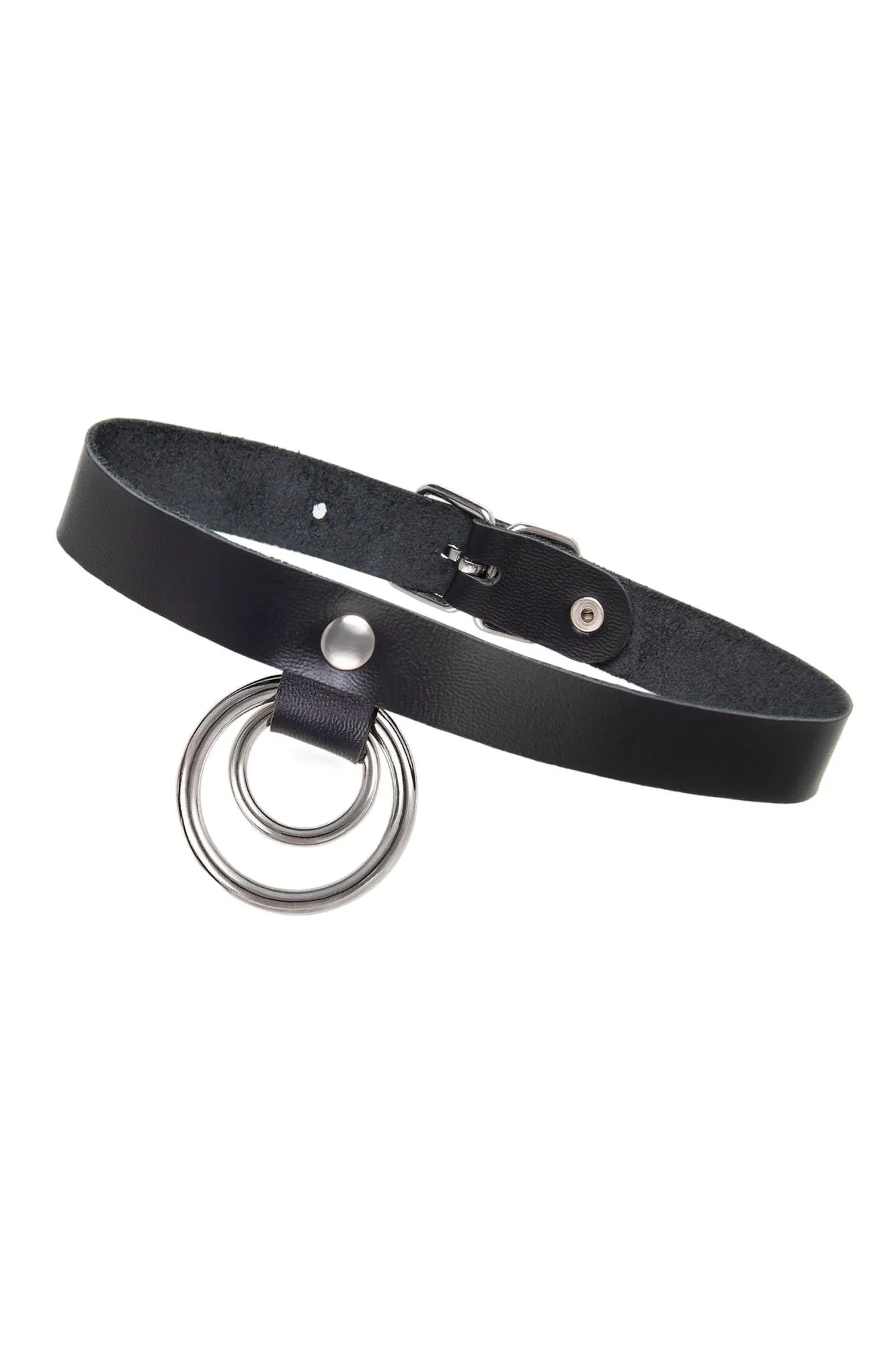 Чокер-ошейник Pecado BDSM, кольцо в кольце, натуральная кожа, чёрный