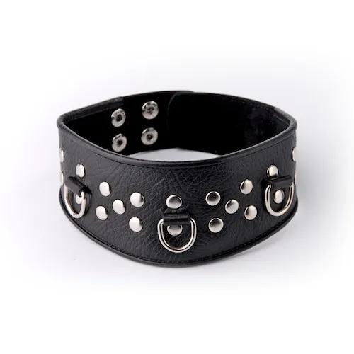 Изготовлен из натуральной кожи с велюровой подкладой. При изготовлении использована никелированная фурнитура. Размер универсальный. Один из основных атрибутов BDSM. Длина поводка - 35 см. Максимальный размер - 40 см в обхвате, минимальный - 30 см.