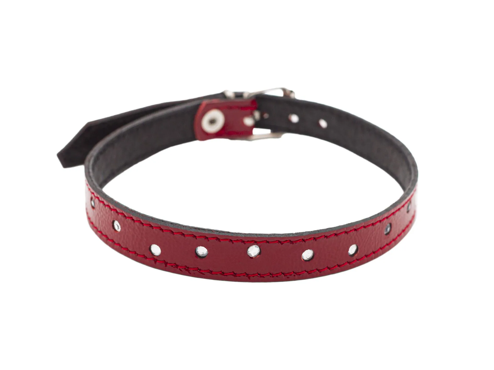 Ошейник со стразами - изысканный аксессуар из натуральной лаковой кожи, великолепно будет смотреться с вашим любым эротическим костюмом для сексуальных игр. Данная модель идеально подходит для повседневной носки.