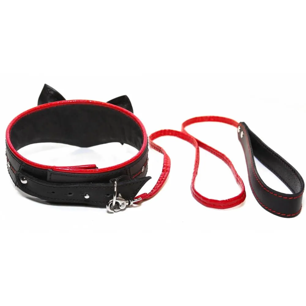 Оригинальный ошейник с бабочкой непременно внесет разнообразие острых ощущений в Ваши сексуальные игры. Ошейник выполнен из настоящей кожи черного и красного цветов и декорирован заклепками, красными нитями и бабочкой из кожи. Кроме этого он оснащен красным поводком, который пристегивается к кольцу на ошейнике с помощью карабина. Подчините партнера своим желаниям или подчинитесь ему сами с этим великолепным аксессуаром.