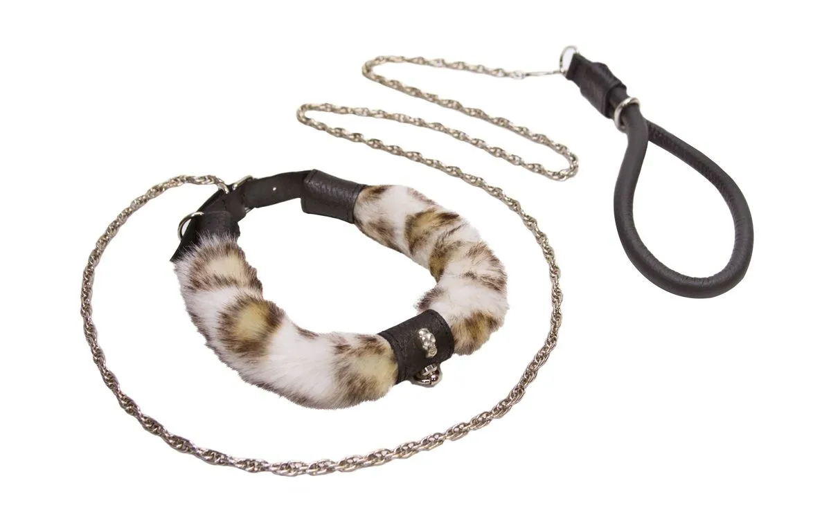 Ошейник с поводком прекрасно подойдет для БДСМ развлечений и позволит Вам реализовать свои самые нескромные сексуальные фантазии. Ошейник выполнен из натуральной кожи и меха, его размер регулируется при помощи ремешка. К ошейнику пристегивается поводок, благодаря которому Вы сможете держать своего партнера под полным контролем.