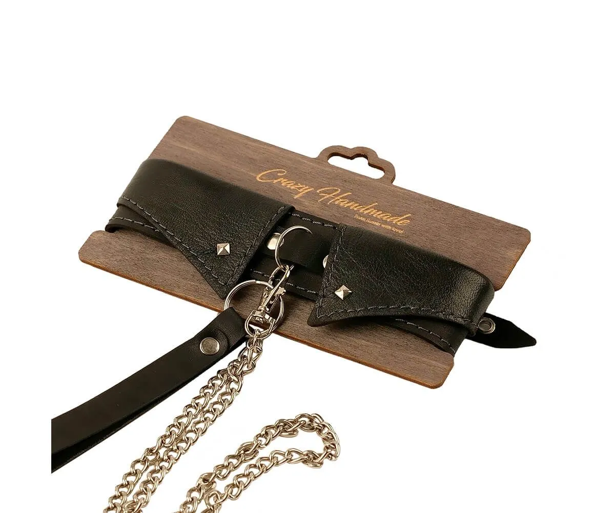 Стильный ошейник от бренда Pink Rabbit, выполненный в виде воротничка из натуральной кожи, придется по душе любителям игр с элементами БДСМ. Ощущение закованности поможет создать нужный настрой и будет символизировать принадлежность своему партнеру. У ошейника есть металлический поводок длиной 80 см, за который при необходимости можно одергивать партнера или направлять его в нужную сторону. Нижний партнер, будучи в полной власти своего хозяина, сможет отбросить стеснение и раствориться в его ласках. Такой ошейник можно также использовать как дополнение к ролевым костюмам.