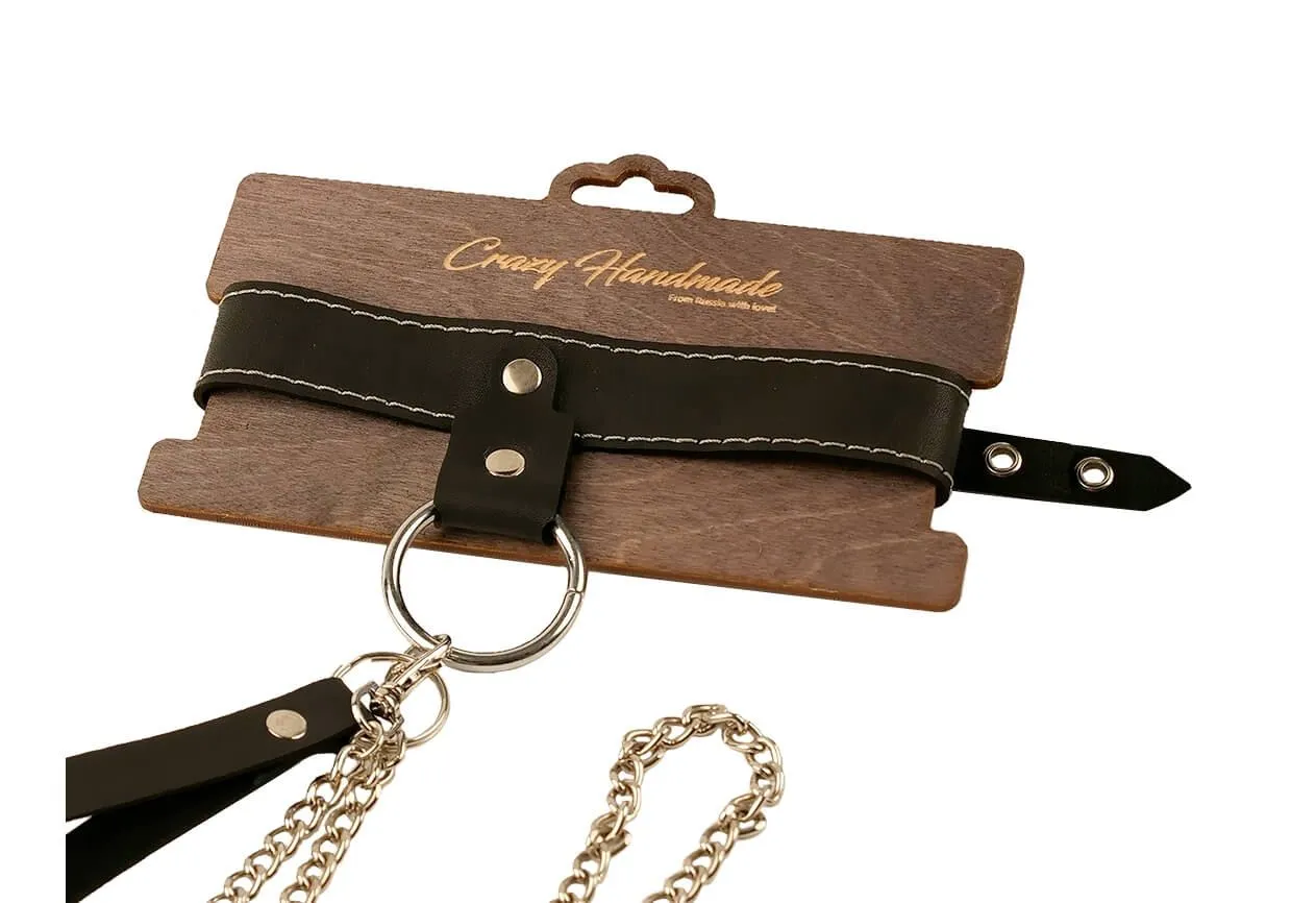 Однослойный ошейник от бренда Pink Rabbit понравится тем, кто предпочитает игры с элементами БДСМ. Ошейник выполнен из натуральной кожи черного цвета, у него есть металлический поводок длиной 80 см, а также удобная петелька для запястья. При помощи поводка можно будет ограничить движения партнера, одергивать его при непослушании или направлять в нужную сторону. К большому металлическому кольцу на ошейнике можно также присоединять и другие аксессуары при помощи карабина. Такой ошейник может стать как просто дерзким украшением, так и символом подчинения своему партнеру.