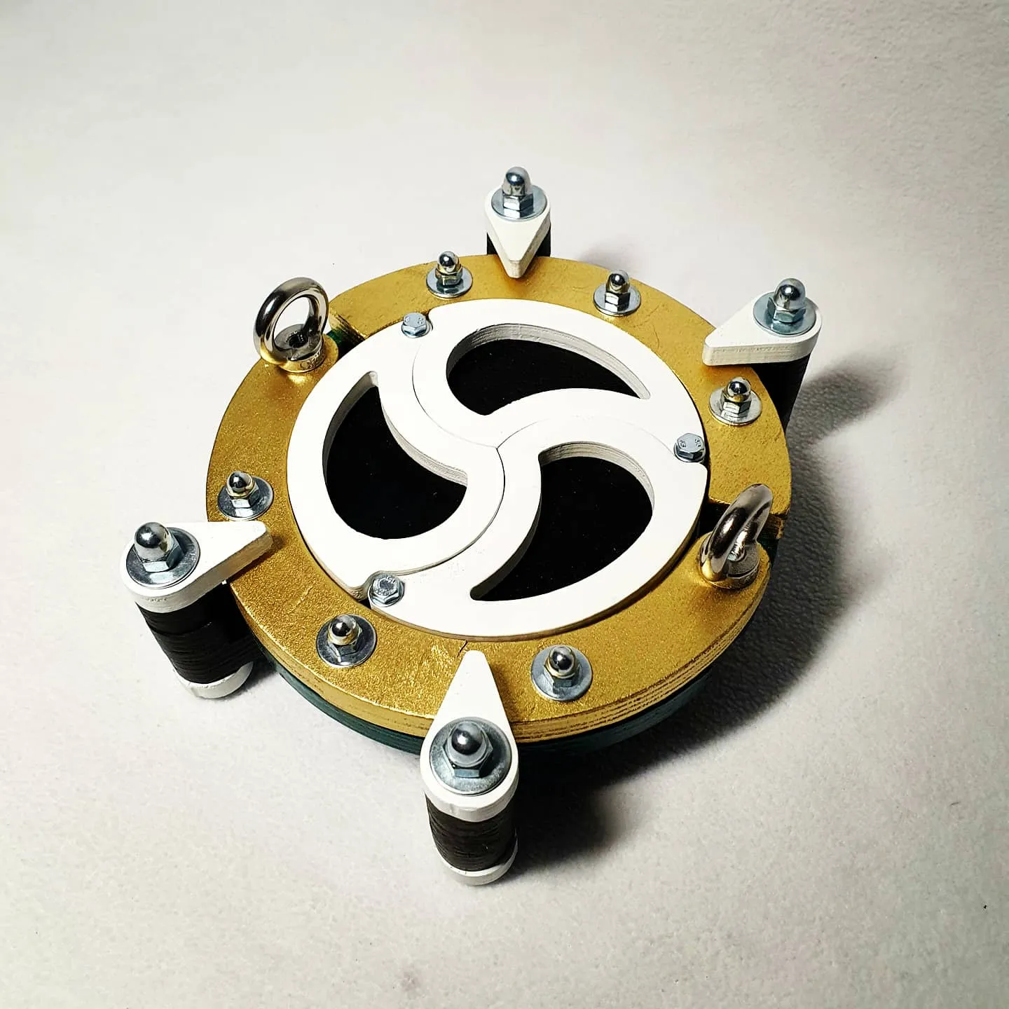 Доступны 4 размера по внутреннему диаметру чокера. Может быть выполнен в одном, двух или трех цветах, а также дополнительно покрыт фосфоресцентной эмалью (будет светиться в темноте). Изготавливается из фанеры, есть возможность изготовить из массива любых пород дерева.