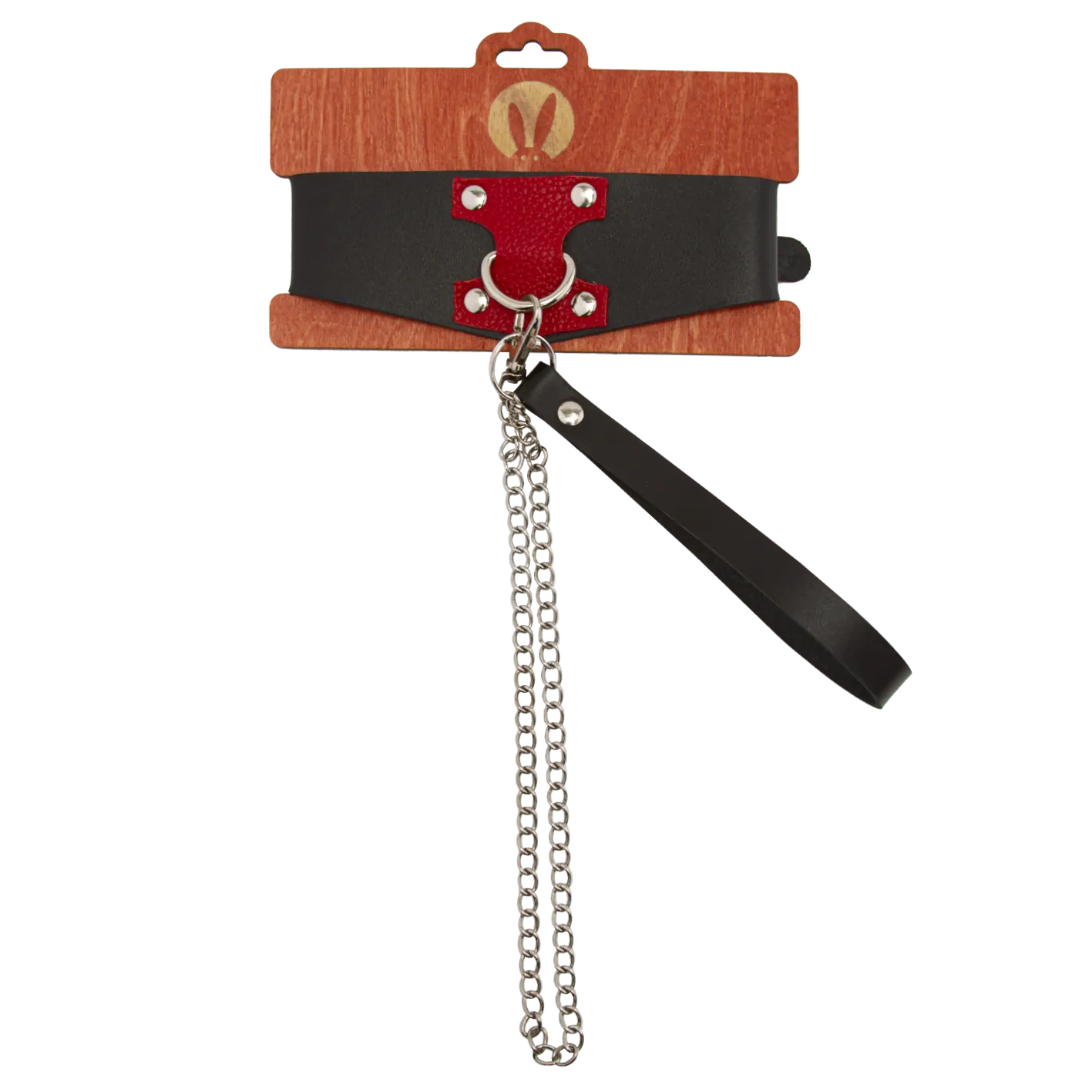 Ошейник от бренда Pink Rabbit понравится тем, кто предпочитает игры с элементами БДСМ. Ошейник выполнен из натуральной кожи черного цвета и декорирован контрастной красной кожей. У него есть металлический поводок, а также удобная петелька для запястья. При помощи поводка можно будет ограничить движения партнера, одергивать его при непослушании или направлять в нужную сторону. К металлическому кольцу на ошейнике можно также присоединять и другие аксессуары при помощи карабина. Такой ошейник может стать как просто дерзким украшением, так и символом подчинения своему партнеру.