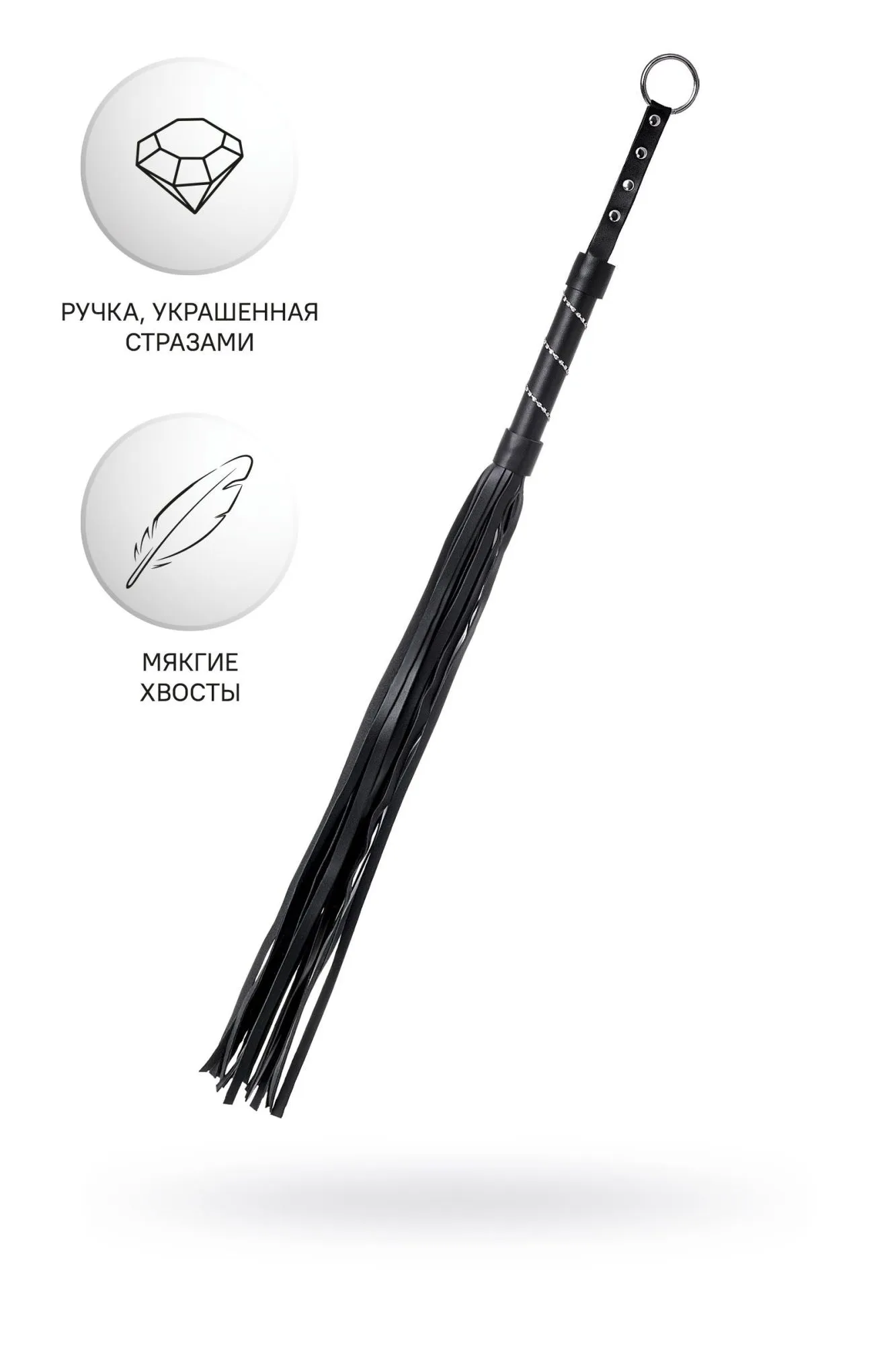 Доминирование и подчинение с помощью ограничения свободы — это еще не все, что вы можете сделать друг с другом. Черный флоггер пригодится и для разогрева, и для ощутимого наказания непослушного партнера. Оптимальный размер, эстетика и функционал – далеко не все достоинства этого изящного девайса. Ручка из черной PU кожи украшена стразами, удобно лежит в руке. Гладкие хвосты рабочей части плети выполнены из мягкой черной PU кожи. Петля служит для более удобного захвата. Сочетание напряжения, власти и элегантности. С этой плеткой можно наказать провинившегося сабмиссива и еще раз продемонстрировать кто в паре главный. Материал: PU кожа Цвет: черный Общая длина: 64 см Рабочая длина: 48,5 см