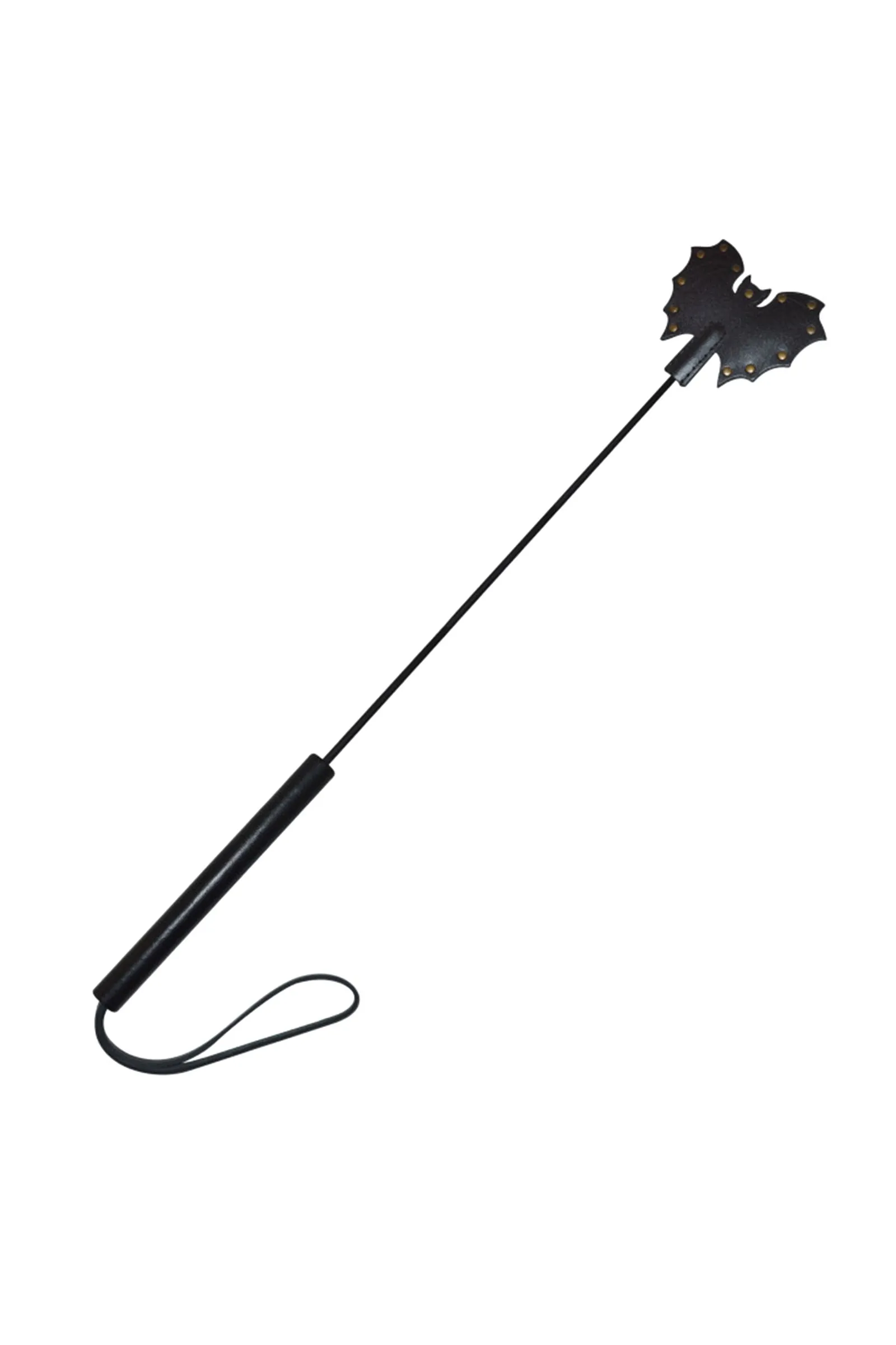 Стек Летучая Мышь изготовлен из натуральной кожи и отдекорирован металлическими кнопками. Длина стека 60-63 см.