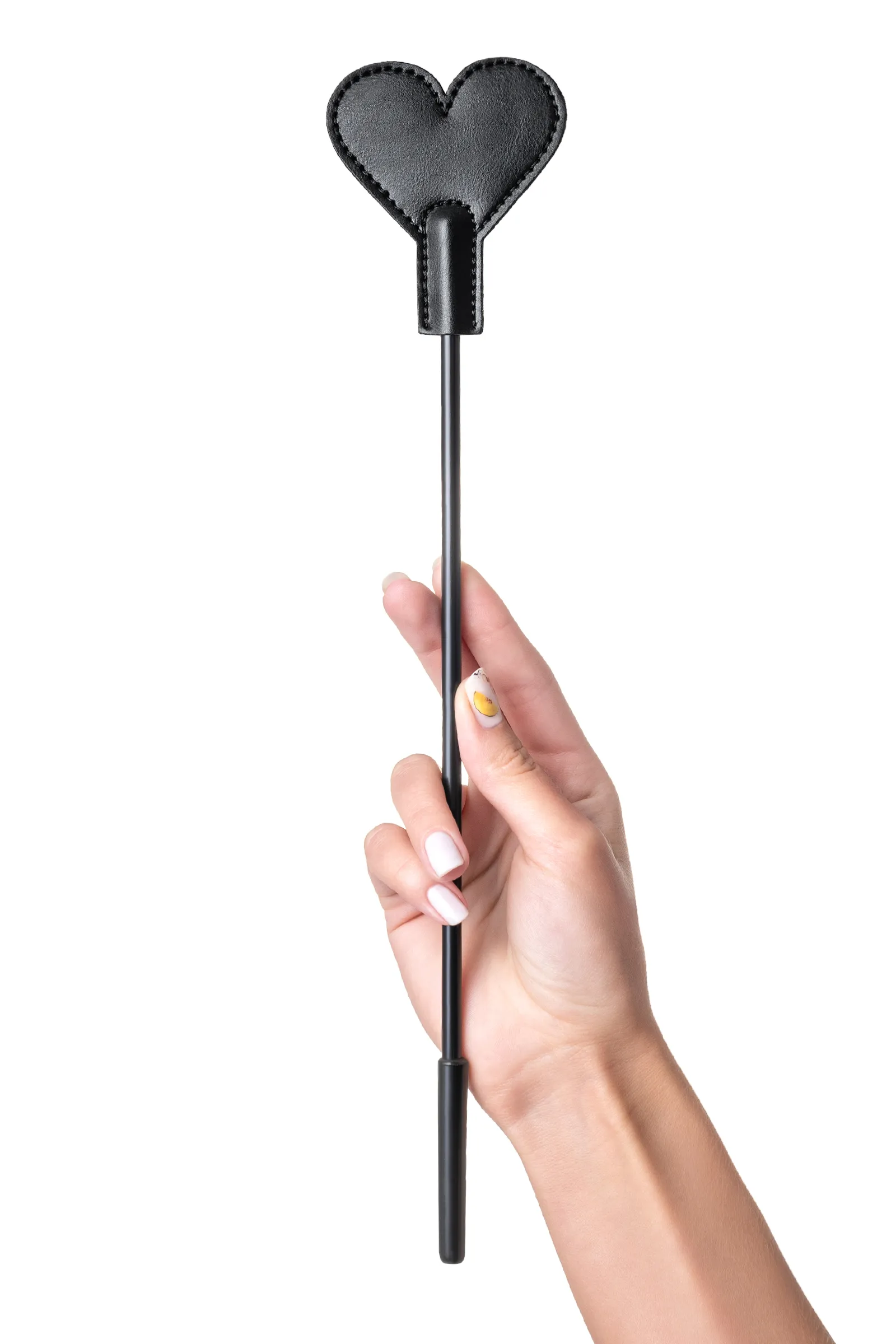 Доминирование и подчинение с помощью ограничения свободы — это еще не все, что вы можете сделать друг с другом. Черный стек с наконечником в форме сердечка-черви пригодится для ощутимого наказания непослушного партнера. Хлесткие точечные шлепки или указка – заигравшийся сабмиссив быстро поймет свою ошибку. Каждый неверный шаг, звук или поворот головы будет немедленно наказан с помощью жесткого стека из PU кожи. Сочетание напряжения, власти и элегантности – с этим стеком можно наказать провинившегося сабмиссива и еще раз продемонстрировать кто в паре главный. Материал: PU кожа Цвет: черный Общая длина: 35 см Длина наконечника: 4 см Ширина наконечника: 7 см