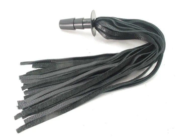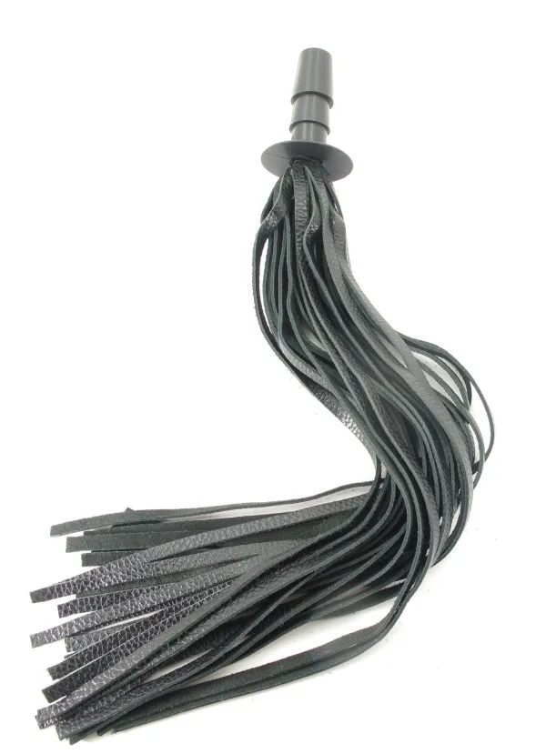 Черная плеть со штырьком для насадок и кожаными ремешком, Длина штырька- 7,5 см, длина хлыстов - 40 см.