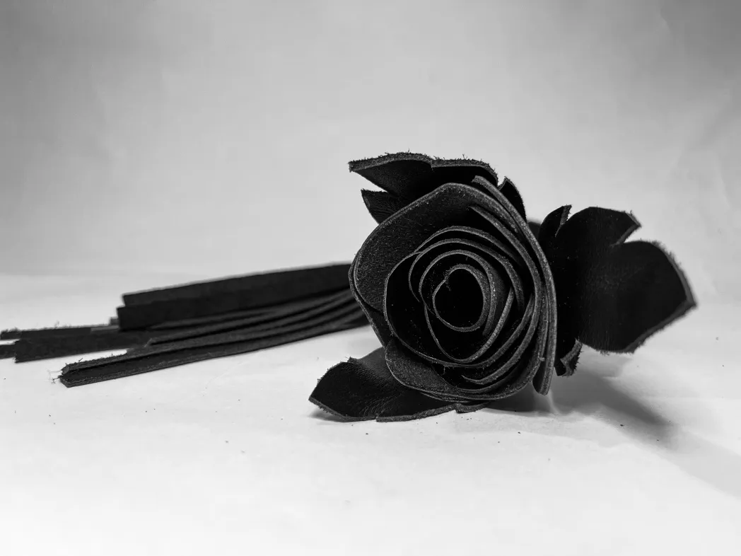 Восхитительная мини-плеть, украшенная чёрной розой. Цветок полностью выполнен из натуральной лаковой кожи, листочки розы,рукоятка и хвосты плети-натуральная мягкая кожа.Размеры этой плети очень изящны- общая длина всего 40см, поэтому данную плеть можно использовать, как генитальную, чтобы добавить новых ярких ощущений. Розочка очень удобно лежит в руке и создает неповторимую атмосферу и настроение, этот аксессуар никого не оставит равнодушным!