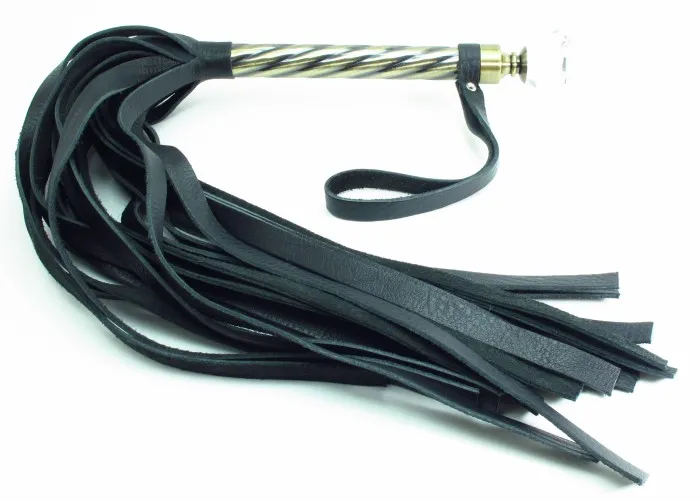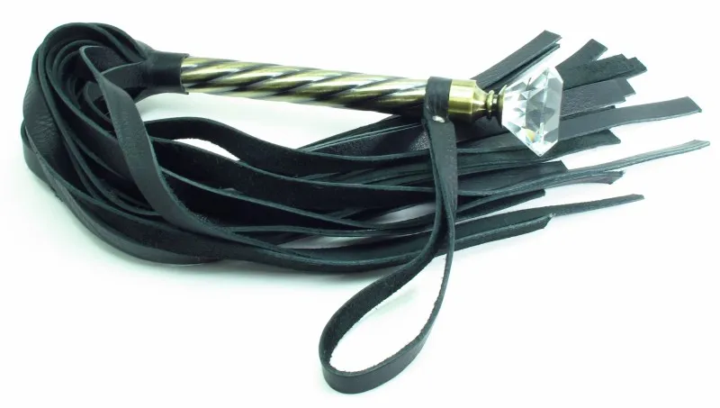 Плеть с рукояткой из натуральной кожи. Рукоятка из металла с ручкой в виде большого кристала и кожаным ремешком, Длина плети- 40 см, рукоятки- 21 см, ремешок- 16.5 см.