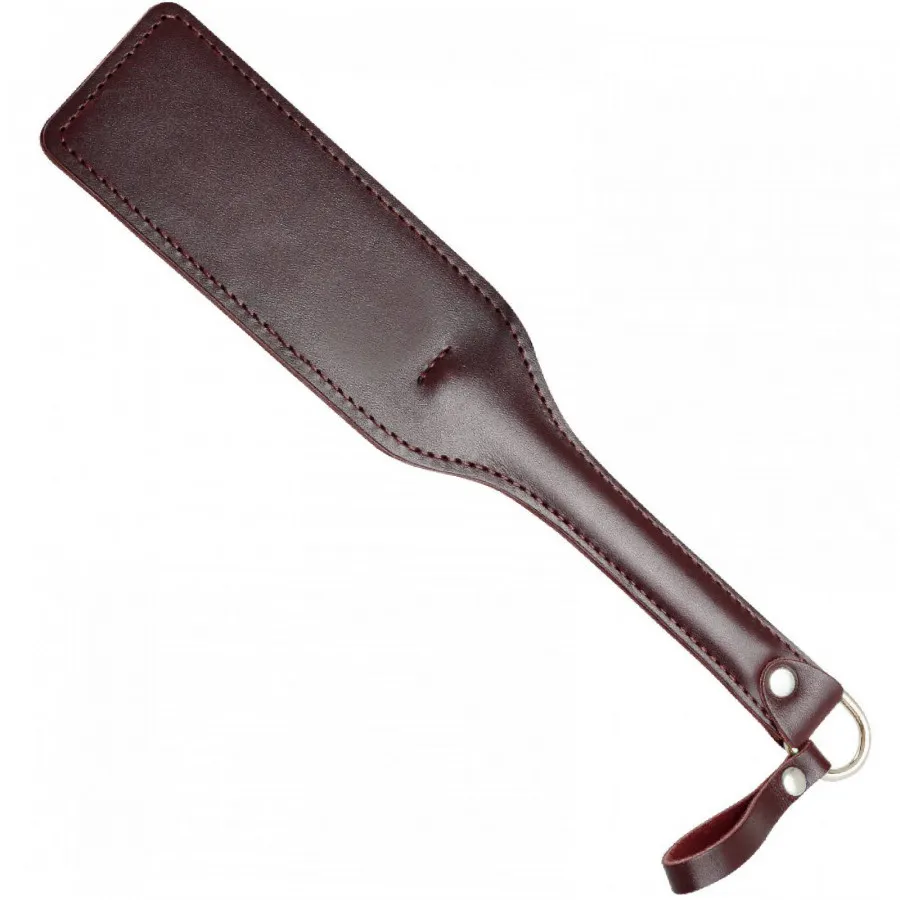 Шлепалка изготовлена из натуральной кожи. Рукоять имеет жесткую основу. Общая длина шлепалки 30 см, ширина 6,5 см. Цвет коричневый.