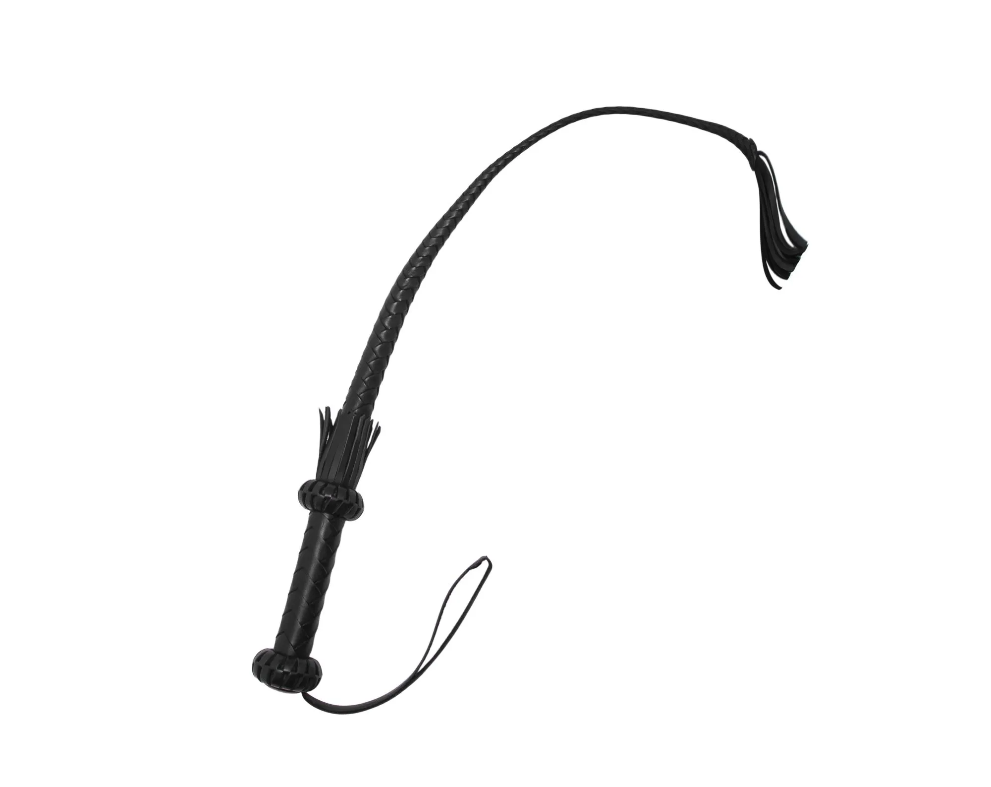 Кнут с жёсткой ручкой 190 мм, ограниченной двумя бобышками и с петлёй для фиксации руки. Общая длина 850 мм. Натуральная кожа. При изготовлении кнута использовалось восьмиполосное плетение "елочкой". На его конце есть узелок и короткая кисточка, которую можно будет применять как для нанесения ударов, так и для дразнящих поглаживаний. Используйте этот аксессуар для нанесения ощутимых ударов, чтобы партнер прочувствовал все силу Вашей любви.