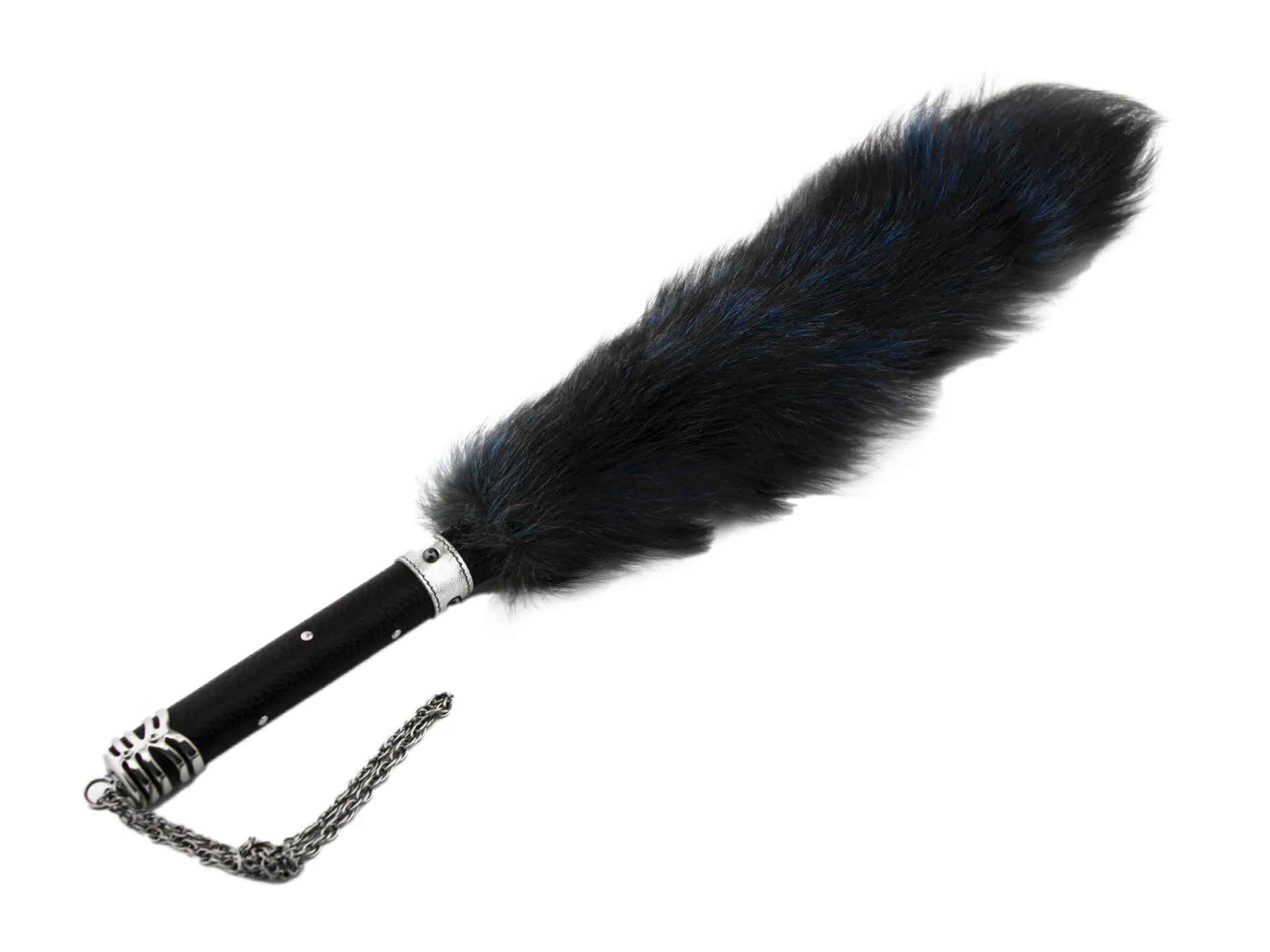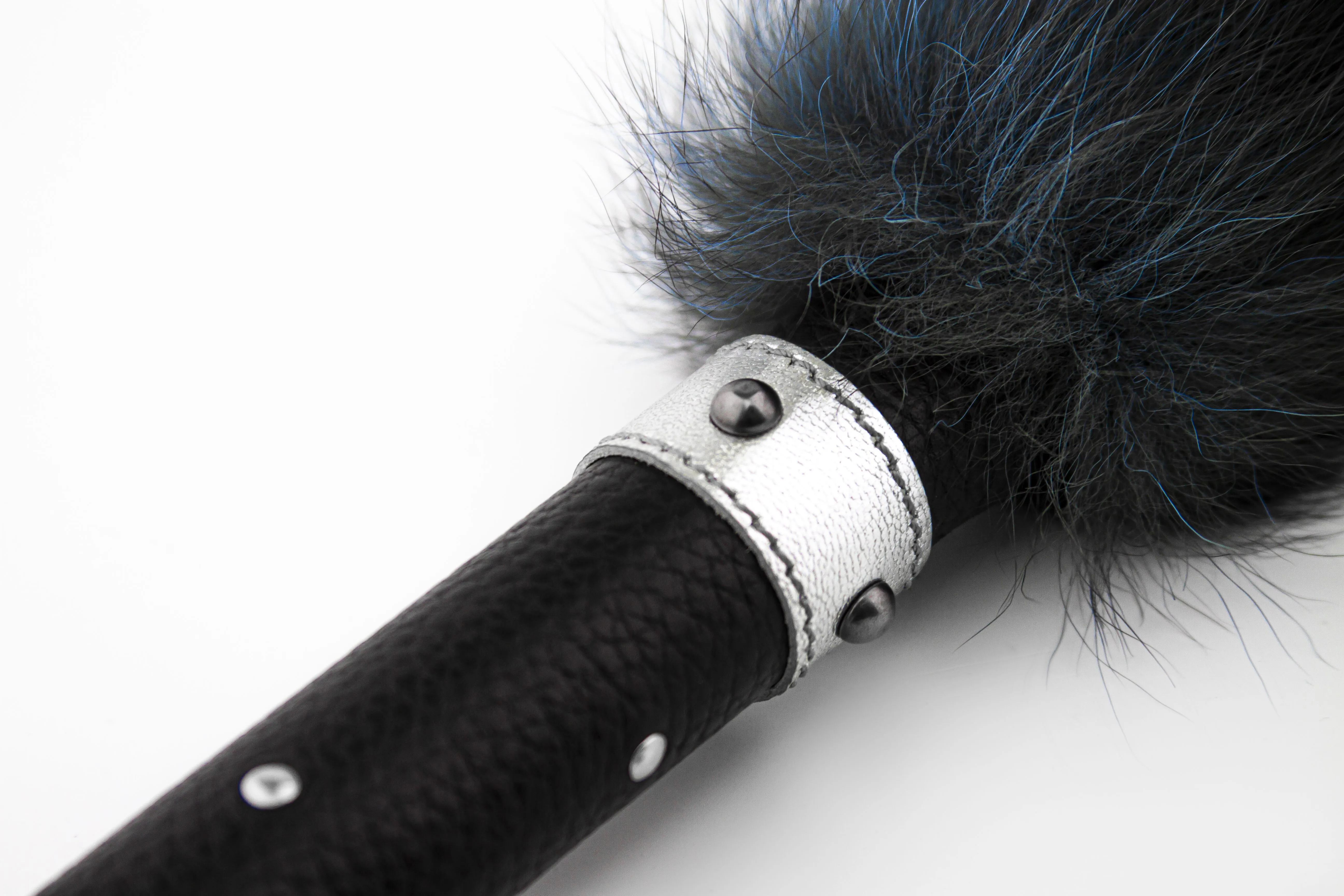Флоггер с ручкой украшенной клепками и резным наконечником выполнен из натурального меха. Максимально удобная рукоять этой прекрасно ложится как в женскую, так и в мужскую руку. Мягкость меха этого флоггера обеспечивает безопасность даже при значительной силе удара.