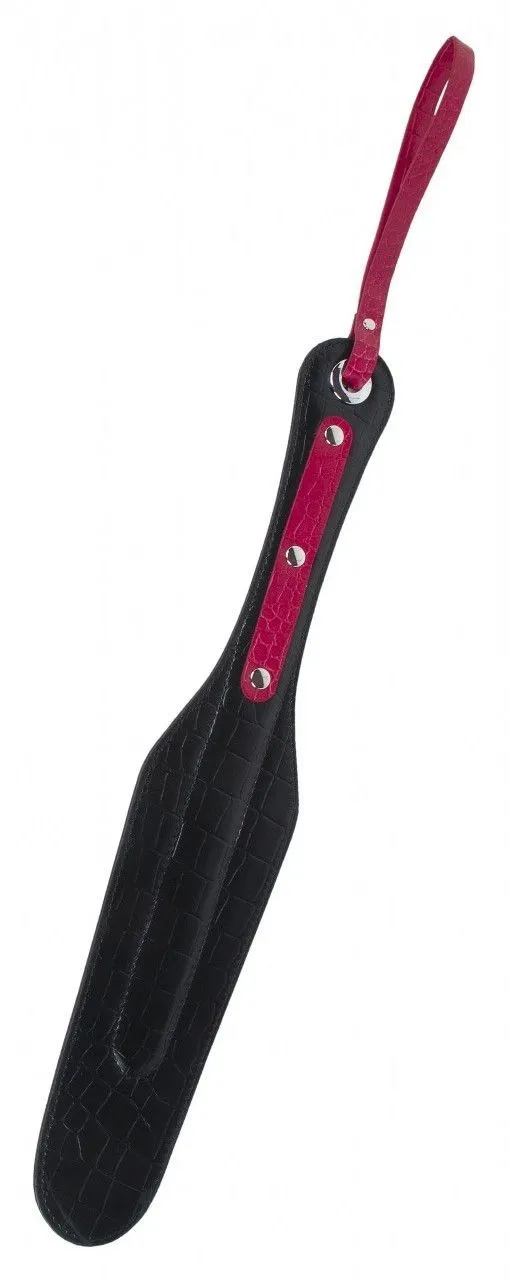 Пэддл от бренда Fire Horse станет прекрасным дополнением Ваших игр с элементами БДСМ. Он выполнен из натуральной черной кожи и декорирован контрастной полоской кожи красного цвета с металлическими заклепками. Раскройте себя с новой стороны - доминируйте над партнером или же сами покоритесь ему! Накажите своего партнера чувствительными ударами за неповиновение, даря ему удовольствие и боль. А за хорошее поведение наградите нежными поглаживаниями по коже, которые возбудят его до предела. На конце пэддла есть специальная петелька для запястья, которая не позволит выронить его в самый неподходящий момент.