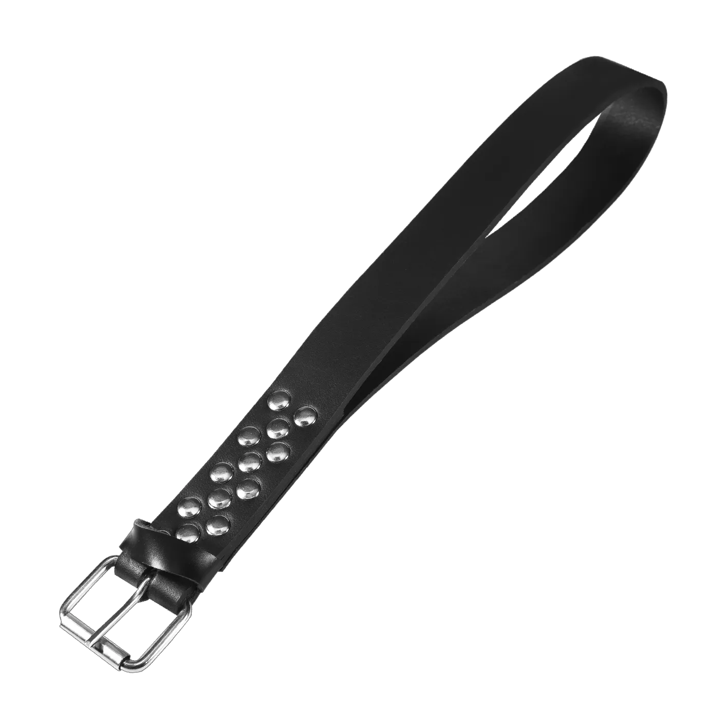 Мягкий спанкер выполнен из черной матовой кожи в виде ремня. "Ручка" украшена пряжкой.