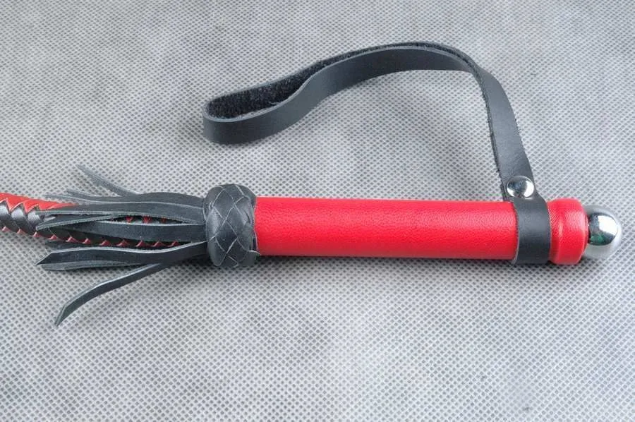Плетка "Стегалка-погонялка" от бренда Beastly сделана из натуральной кожи черного и красного цветов. Она выполнена в технике четырехполосного плетения и имеет на конце узелок с кисточкой. Ручка плетки с круглым металлическим навершием обтянута красной кожей, на ней есть плетеный ограничитель и петля для фиксации на руке. Используйте этот аксессуар во время игр с элементами БДСМ, чтобы получить острые, но возбуждающие ощущения от страстной порки.