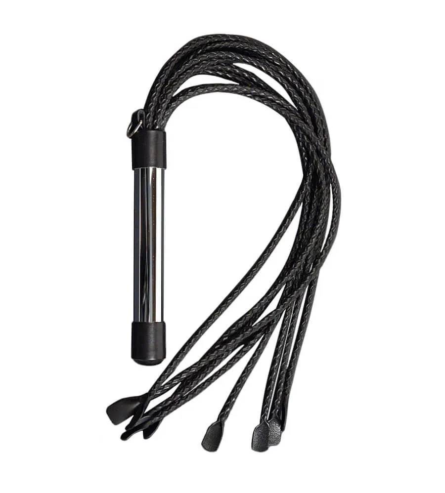 Плеть «хром Кошка – 9-хвостка Ноготковая» от бренда Beastly сделана из натуральной кожи черного цвета. У нее есть 9 круглых плетеных хвостов средней жесткости, оканчивающихся прямоугольными "ноготками". На хромированной ручке с декоративными подвесами есть металлическое полукольцо для подвеса. Такая плетка станет отличным орудием для наказания партнера - наносите удары со всей страстью, чтобы вызвать острые, но возбуждающие ощущения.