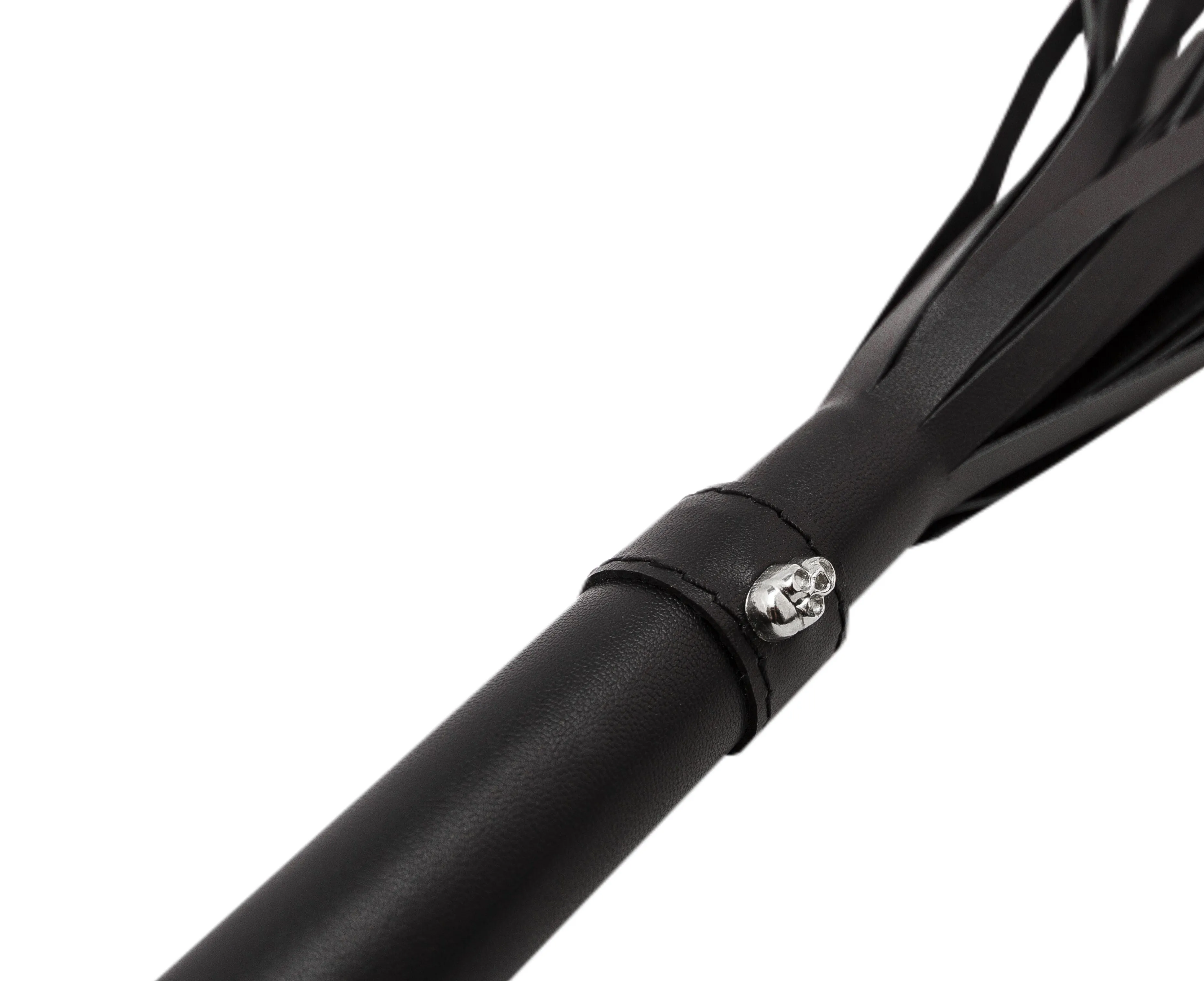 Плеть выполнена из кожи черного цвета. На ручке имеется череп, а также кожаная петелька для запястья, благодаря которой плеть не выскользнет из Ваших рук.