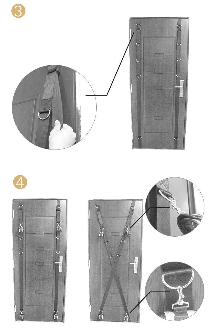 Насладитесь новыми ощущениями от немыслимых доселе позиций, используя растяжку на дверь от бренда Roomfun! Благодаря этому фиксатору, Вы сможете дать партнеру полный доступ к своему телу - испытайте удовольствие от любовной игры лицом к лицу или повернитесь к двери, позволяя партнеру насладиться Вашим видом сзади. Использовать фиксатор легко - подвесьте крепежи на открытой двери, закройте и заприте ее – и растяжка готова. Затем прикрепите манжеты для рук и ног к верхним, средним или нижним кольцам, используйте регулируемые ремни, чтобы найти наиболее удобную позицию. 4 фиксатора для рук и ног обеспечивают простую, но надежную фиксацию, а дорожка искусственного меха вдоль них, позволит носящему почувствовать себя более комфортно.