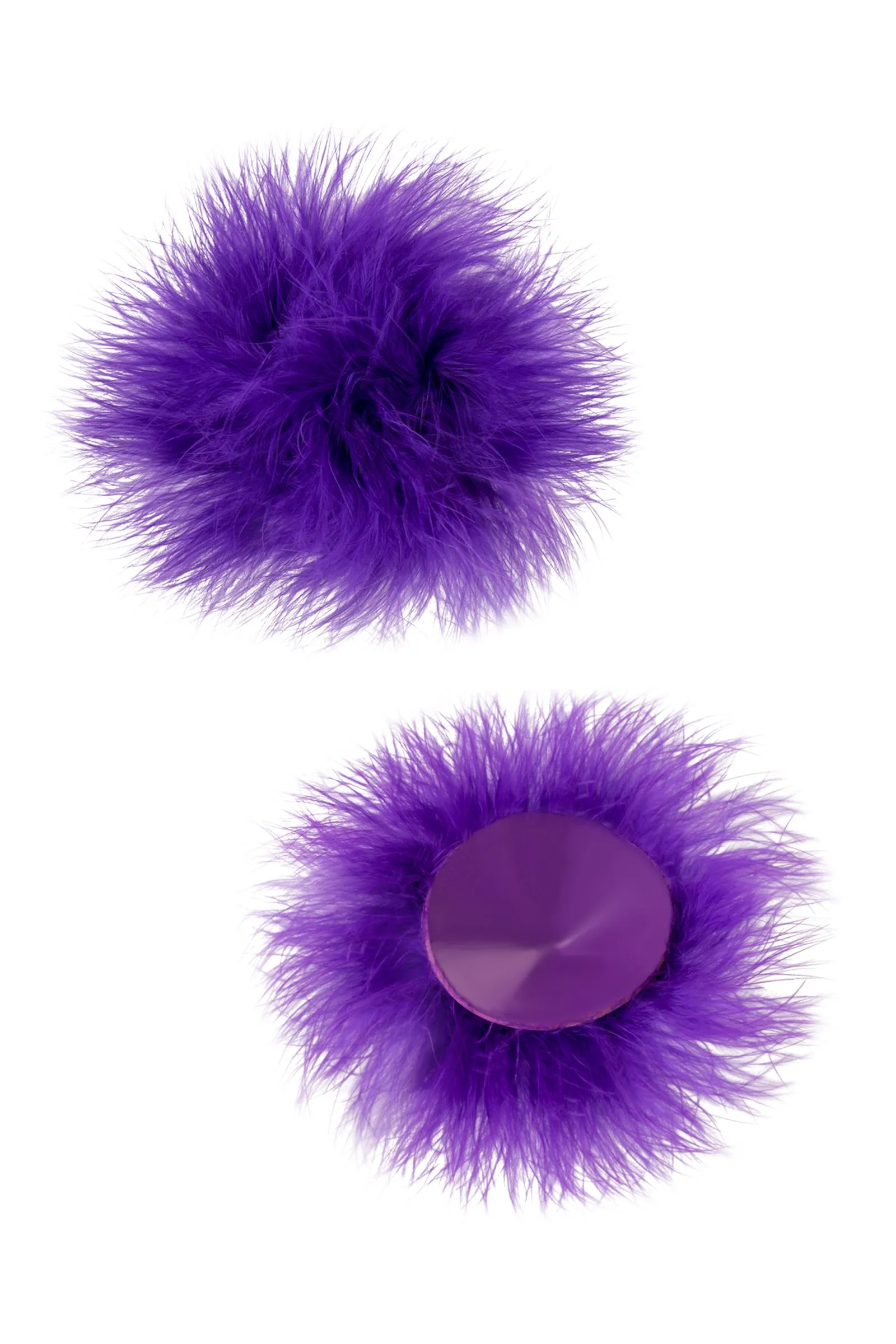 Наклейки на соски многоразовые. Однотонные. Основание выполнено из полиуретана, внутри — слой силиконового геля. Декор: искусственная кожа, пух. Размер основания: 5 см. Наклеивать на чистую кожу без следов косметических средств. Снимать осторожно. После использования внутреннюю сторону промыть теплой водой. Хранить, изолировав клейкий слой пленкой или приклеив к стеклянной поверхности (зеркалу). Не использовать при гиперчувствительности к силикону, нарушениях пигментации или повреждениях кожи груди.