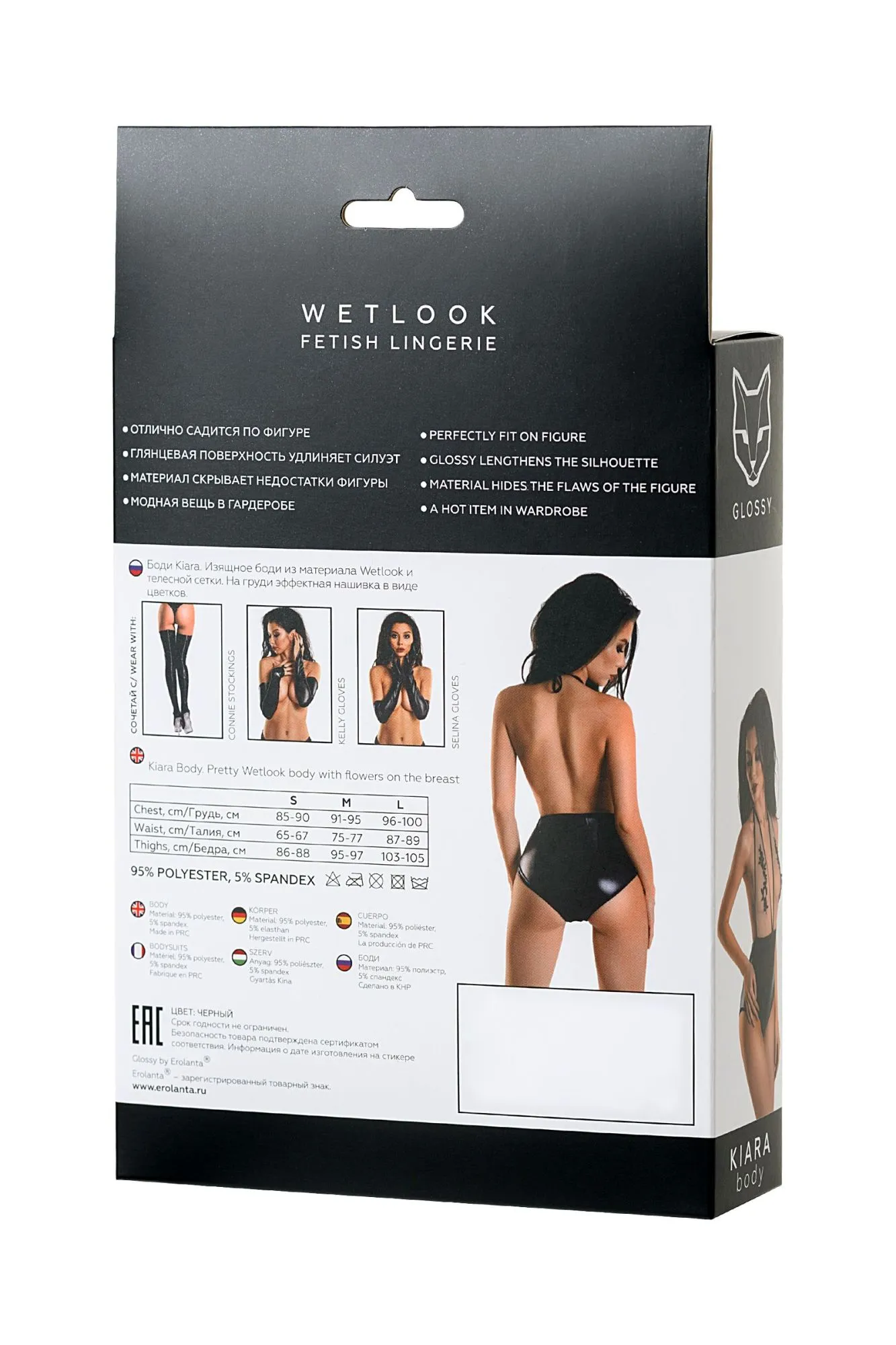 Новая коллекция белья из популярного материала Wetlook – Glossy. WETLOOK: Отлично садится по фигуре; Глянцевая поверхность визуально удлиняет силуэт; Плотный материал скроет мелкие недостатки фигуры; Модная вещь в сексуальном и базовом гардеробе. Боди Kiara Изящное боди из материала Wetlook и бежевой сетки. На груди эффектная нашивка в виде цветков. Нежнейший образ в сочетании с сексуальным декольте не оставит равнодушным вашего партнера.