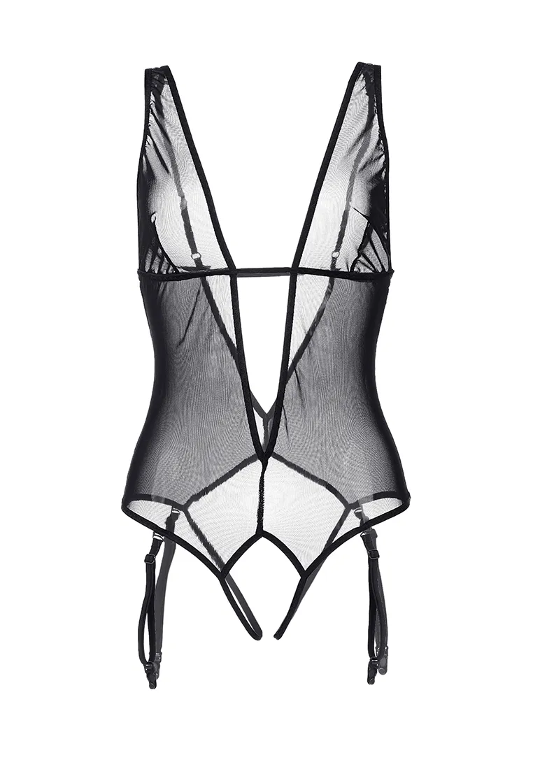 —Эротическое боди Waname Exility с пажами для чулок черное (46-48)