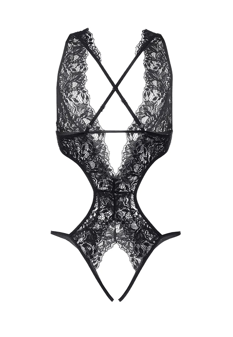 Эротическое боди Erolanta® Anais кружевное, эластичное. Глубокое декольте, спина и интимный вырез оформлены свободным кружевным краем. Перекрещивающиеся регулируемые бретели. *Допускается замена кружева на аналогичное.