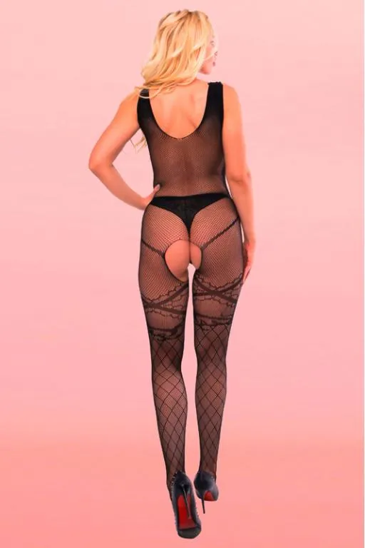 Anita - боди-комбинезон с открытым доступом. Дизайн в виде сетки дополнен изящным кружевным рисунком.