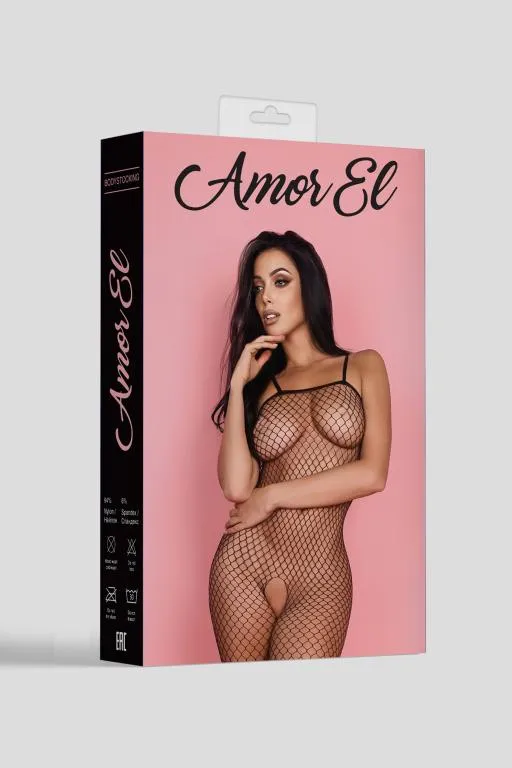 Боди-комбинезон на бретельках с открытым доступом. Дизайн выполнен в виде крупной сетки.