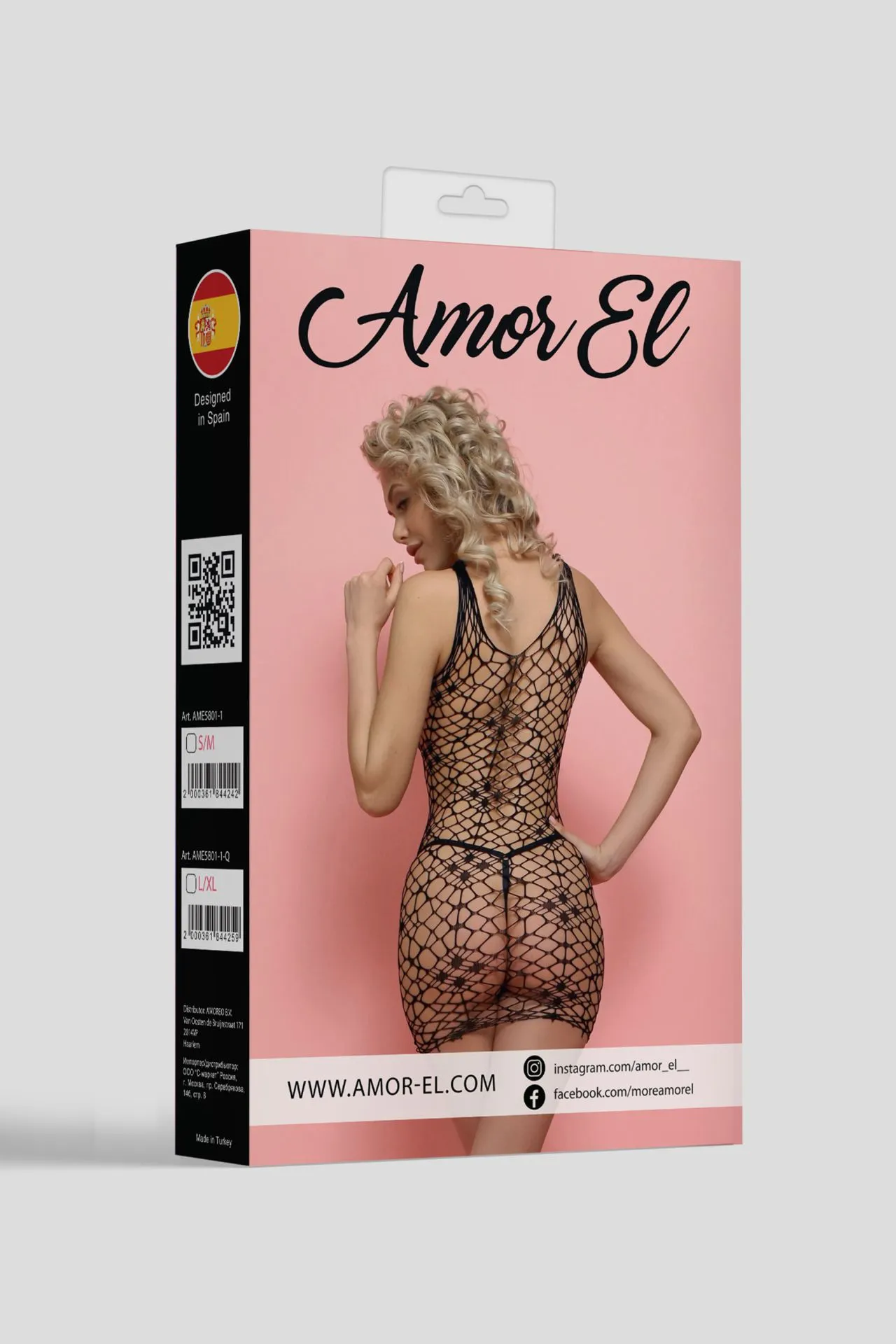 Эротическое мини-платье на бретелях. Оно имеет очень сексуальный рисунок в крупную сетку в виде паутины. Благодаря использованию большего количества нейлона, белье сохраняет очертания, не деформируется, растягивается и выгодно облегает фигуру. А за счет эластана, даже после сильного растяжения, оно не деформируются, и всегда принимает исходную форму.