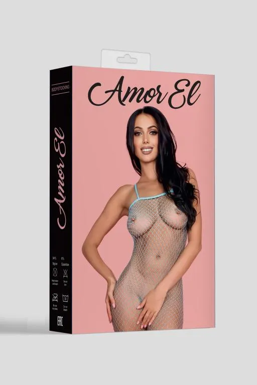 Боди-комбинезон на бретельках с открытым доступом. Дизайн выполнен в виде крупной сетки.