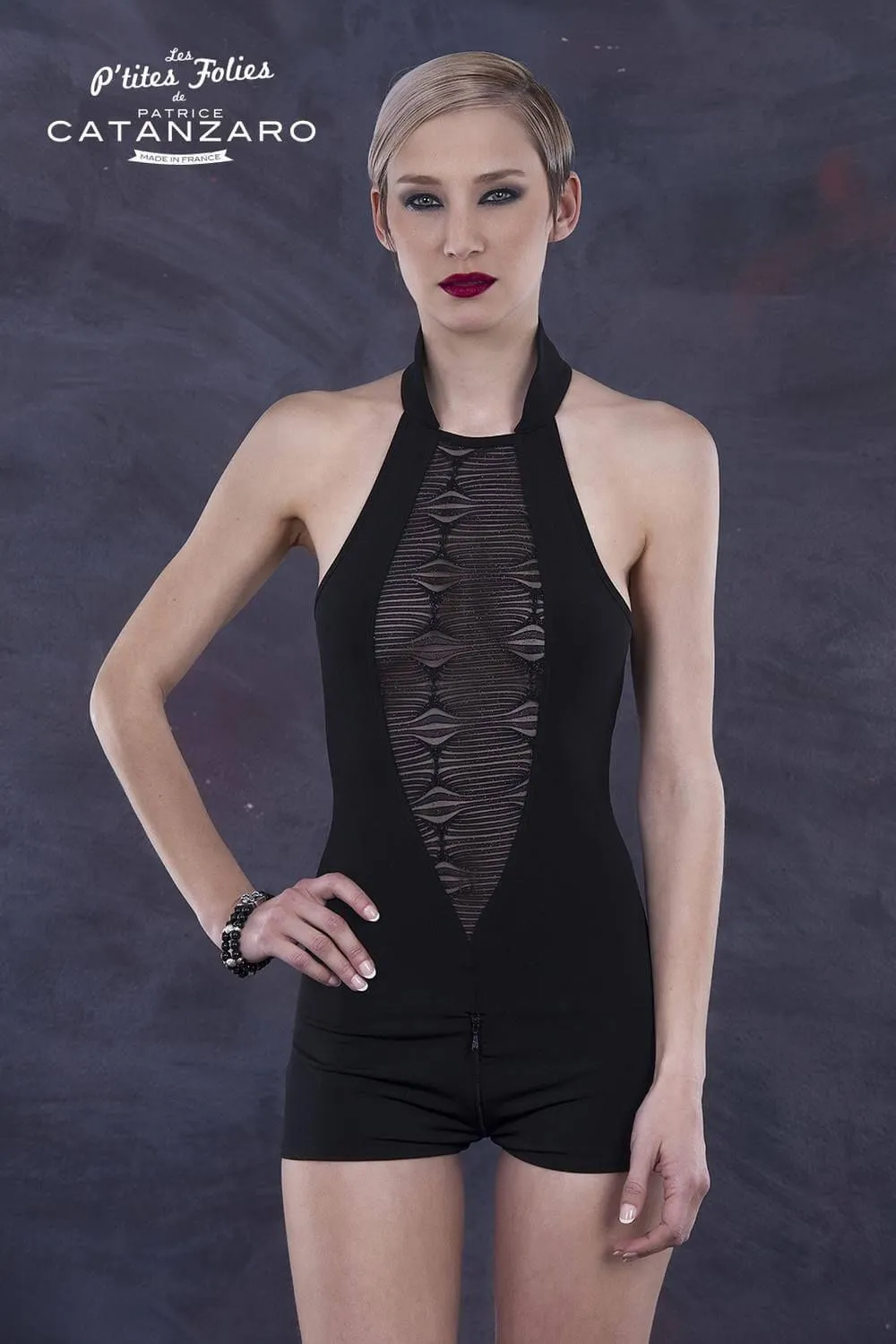 Невероятно эротичный комбинезон Calie из коллекции Les P'tites Folies Vol 6 от французского модельера Patrice Catanzaro отлично подойдет для проведения романтического вечера. Комбинезон выполнен из мягкого эластичного материала и на груди декорирован вставками из сетки с интересным узором. Молния с несколькими ползунками, провокационно проходящая через промежность, взбудоражит все мысли Вашего избранника. Комбинезон также застегивается на воротнике-стойке при помощи двух кнопок.