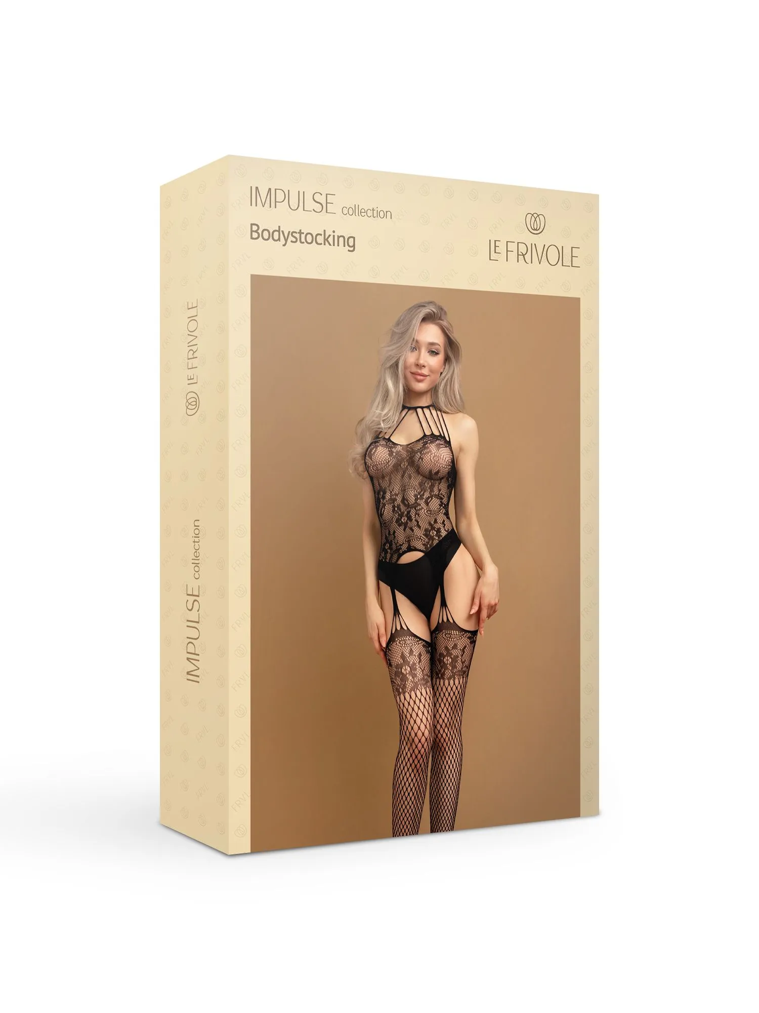 Цветочные и пэйсли узоры всегда навевают романтичное настроение, отсылая воображение в счастливую негу, залитую солнцем, нежностью и любовью. Контрастом выступают сетчатые чулки и лямки, сходящиеся на шее. Данное сочетание легкости и страсти в боди-комбинезоне черного цвета будоражит воображение и с легкостью может вскружить голову кому угодно. Образ можно дополнить мини юбкой и туфлями. Особый состав и плетение не сковывает движения и не перетягивает тело, а значит вам будет комфортно!
