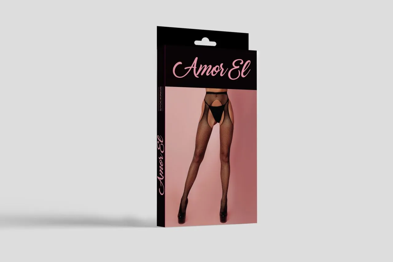 Чулки с поясом из мягкой эластичной сетчатой ткани покрытые стразами.
